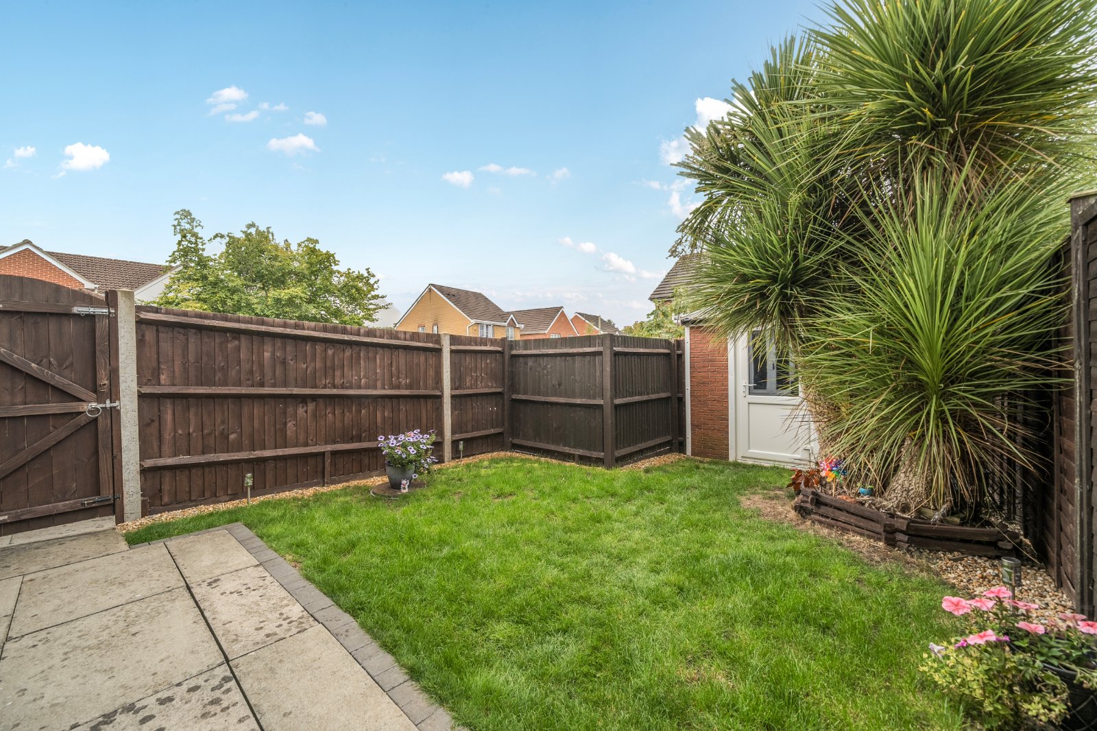 Outside, the rear garden is neatly enclosed and thoughtfully arranged, providing a private outdoor space with a lawn, patio area and mature planting. It’s perfectly suited to outdoor dining and family enjoyment.