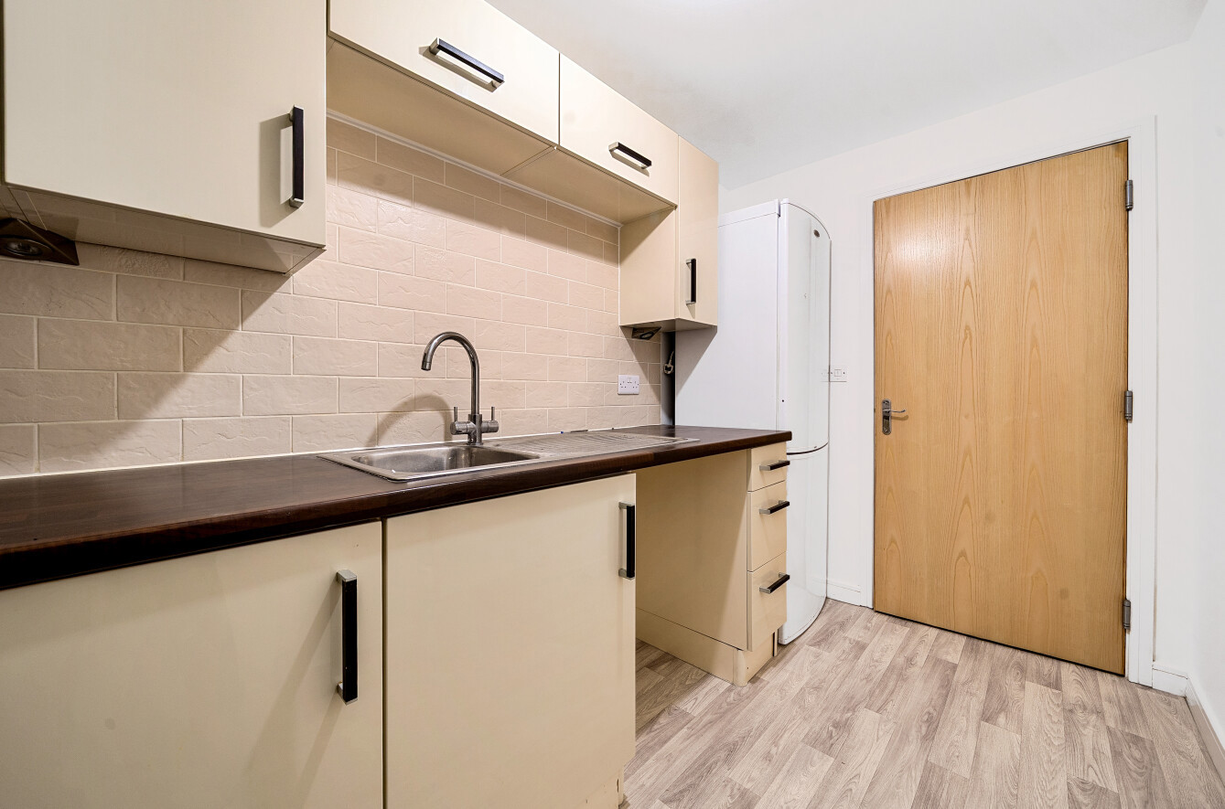 Benefitting from a recent program of refurbishment, the property features a welcoming entrance hall with ample storage, leading through to a large sitting/dining room filled with natural light from a wide front-facing window. The contemporary kitchen is fitted with a range of modern wall and base units, stylish tiling, and space for appliances, providing both practicality and a clean, modern aesthetic.