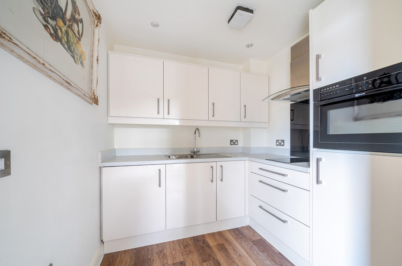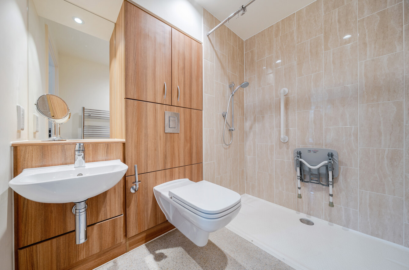 From the reception room there is access to a high-spec kitchen, featuring integrated appliances, including a combi oven-microwave, fridge and washing machine. These are set within sleek white cabinetry finished with stylish worktop space. The generous principal bedroom is a peaceful retreat, complete with a large, fitted wardrobe and direct access to a luxurious shower room with premium fixtures and a generous fully tied walk-in shower area.. The apartment is well presented throughout and includes underfloor heating, energy-efficient lighting, and discreet emergency call systems providing comfort and reassurance.