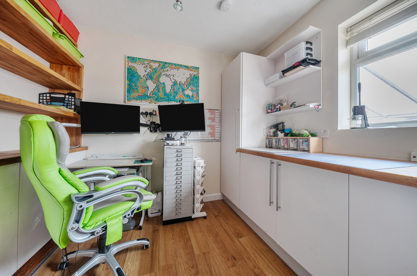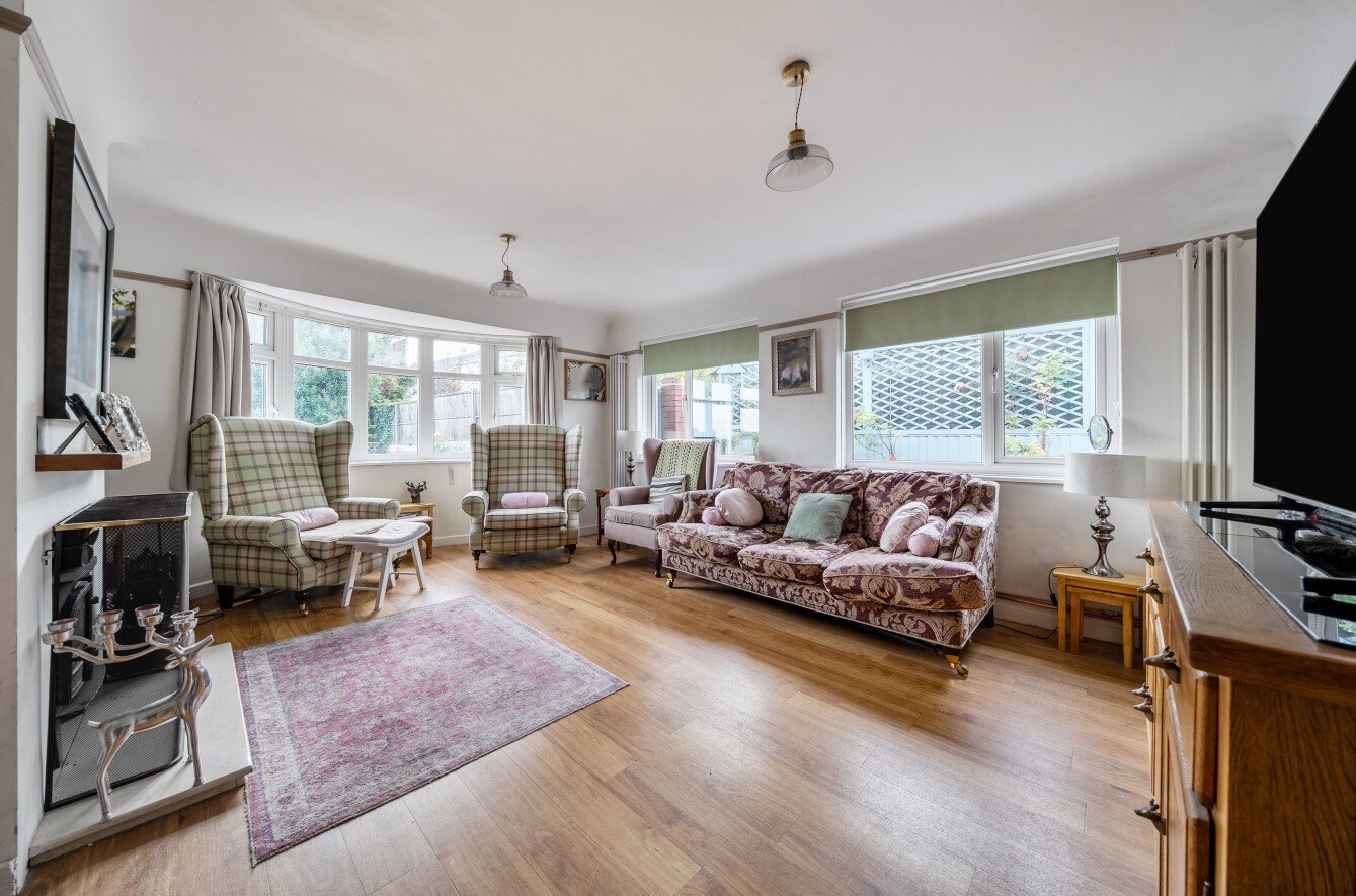 Two generous reception rooms provide flexible living arrangements: the main lounge offers a cosy atmosphere with a feature fireplace and large windows that flood the space with natural light, while the second reception room can serve as an office, snug, or fifth bedroom.
