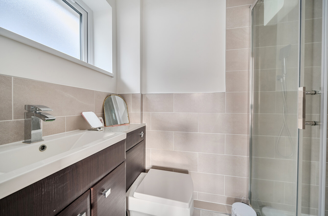 The principal bedroom benefits from a stylish en-suite shower room, while the remaining bedrooms are served by a contemporary family bathroom, featuring both a full-sized bath and a separate shower.