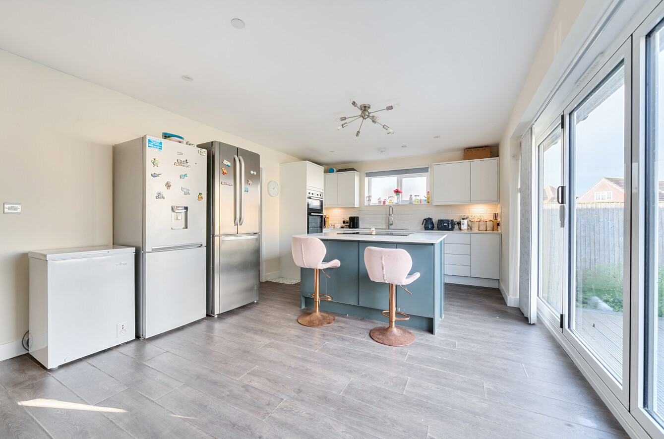 At the heart of the home is an impressive open-plan kitchen/dining area, perfect for entertaining, complete with bi-fold doors opening directly onto the rear garden, seamlessly blending indoor and outdoor living.