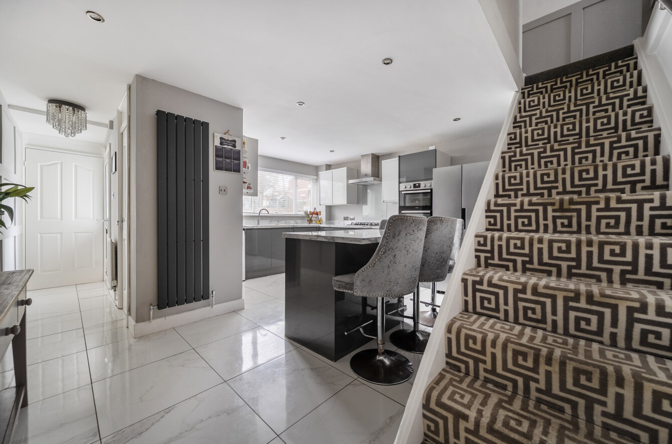 The ground floor accommodation comprises a welcoming entrance hall with a convenient downstairs W/C and a spacious open-plan kitchen/diner, providing an excellent space for both everyday family living and entertaining. To the rear of the property is a separate lounge, which enjoys a pleasant outlook over the garden. This room offers a bright and comfortable living space, with ample room for a range of seating and furnishings, making it ideal for relaxing in the evenings. The room enjoys a pleasant outlook to the rear garden and benefits from good natural light, making it an ideal space to unwind or entertain guests.