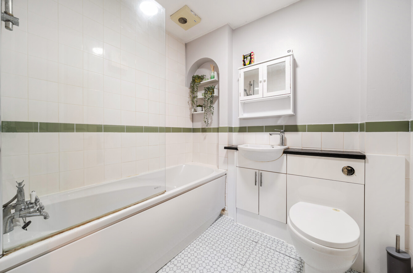 The property is entered via a welcoming hallway which leads through to a generously proportioned sitting/dining room. This space enjoys excellent natural light and provides ample room for both seating and dining furniture, creating an ideal environment for everyday living and entertaining. The kitchen is fitted with a contemporary range of gloss-fronted units, space for appliances and practical work surfaces, offering a clean and functional layout. The double bedroom is well sized and benefits from a pleasant outlook, while the accommodation is completed by a modern bathroom fitted with a white suite including bath with shower over.