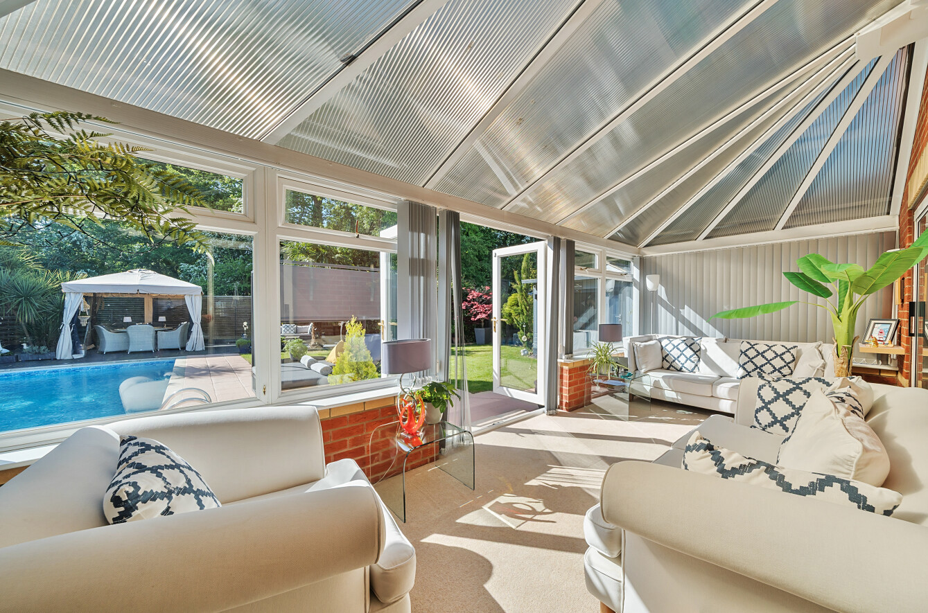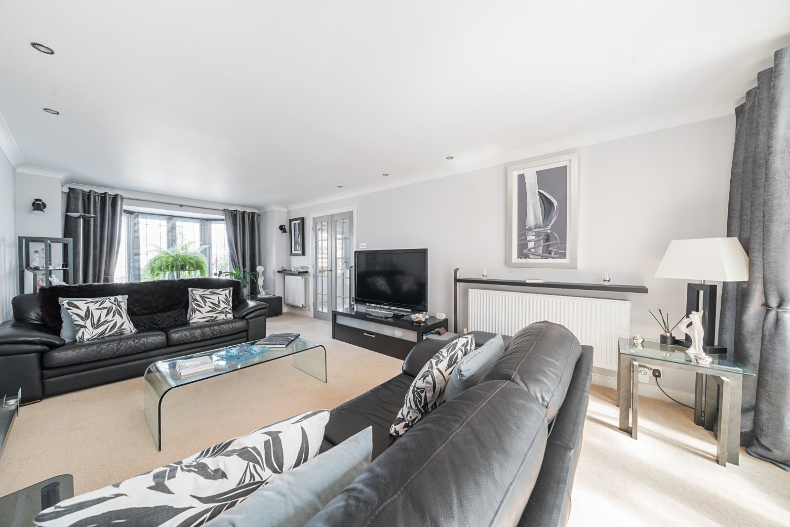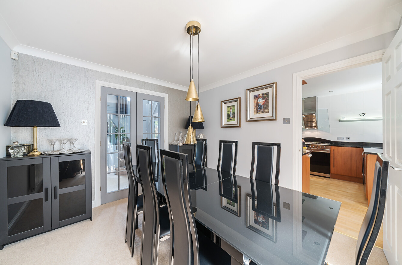 Doors lead to the large garden room, which gives access and views over the rear garden. The property enjoys a separate dining room adjacent to the kitchen, with double French doors from the hall and with doors to the garden room, which in turn leads to the rear garden.