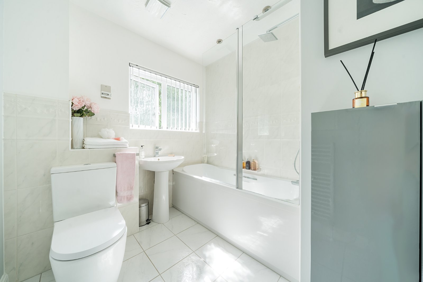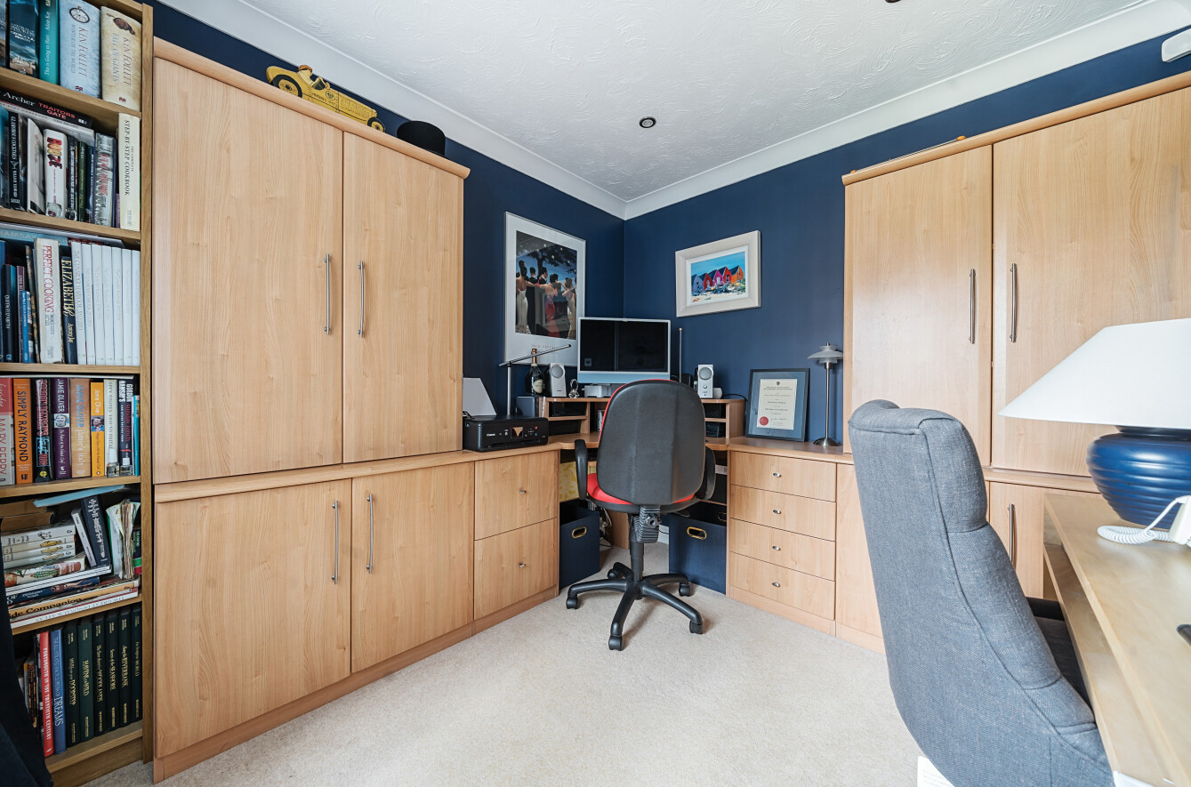 The ground floor has a separate room that can be used as a study/snug/5th bedroom and has a separate adjacent modern cloakroom. Upstairs on the first floor, there are four good sized bedrooms all with fitted wardrobes. A family bathroom with Porcelanosa tiles, a folding glass shower screen, thermostatically controlled Bristan rainfall shower.