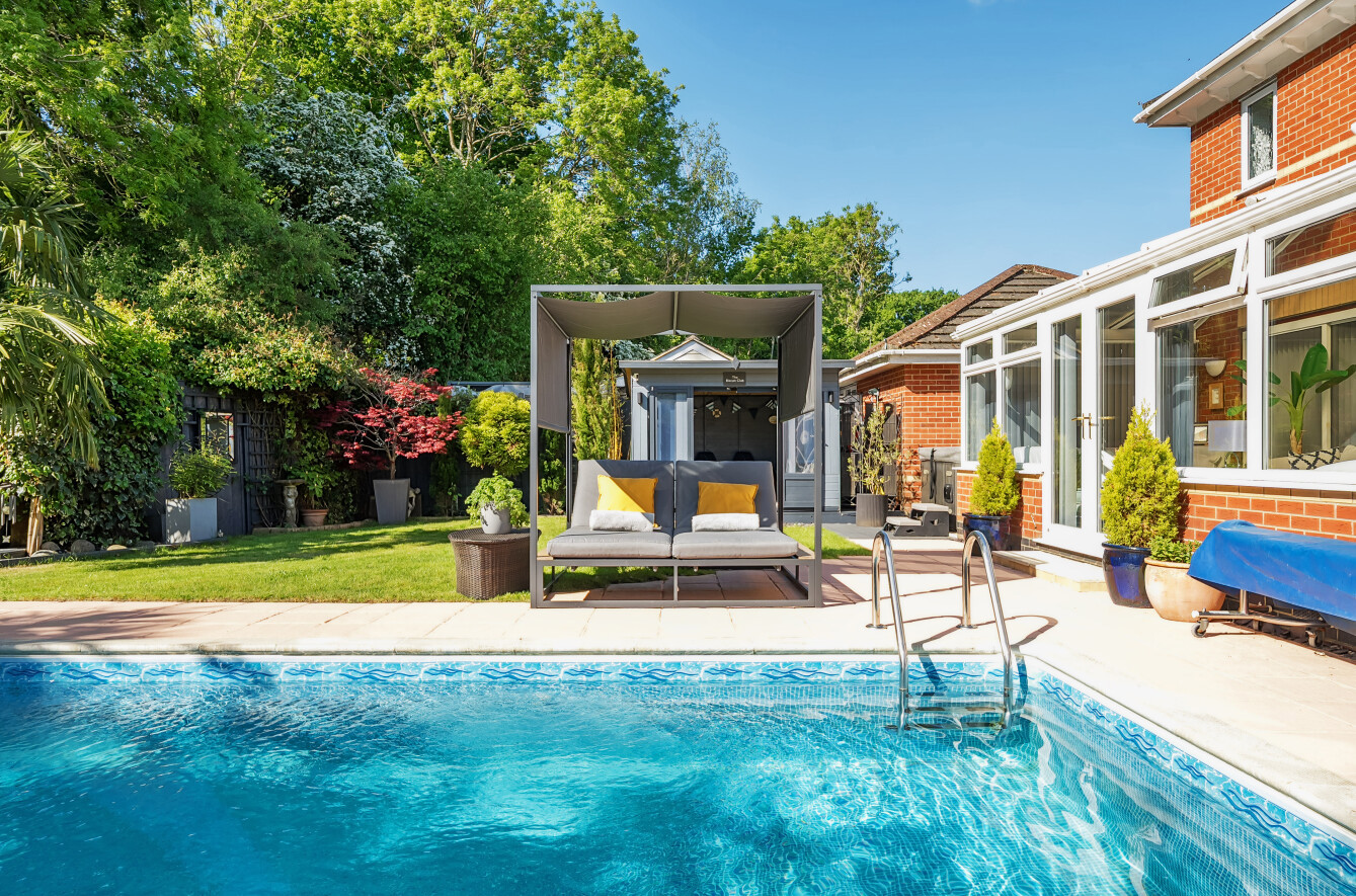 Externally the property has the advantage of being on a corner plot that enjoys a high degree of privacy, in addition to the large driveway there is a large detached double garage with power and lighting. The impressive private landscaped rear garden boasts a 28ft x 14ft swimming pool heated with a Calorex air source heat pump, a large decked terrace to the rear is ideal for outdoor socialising.