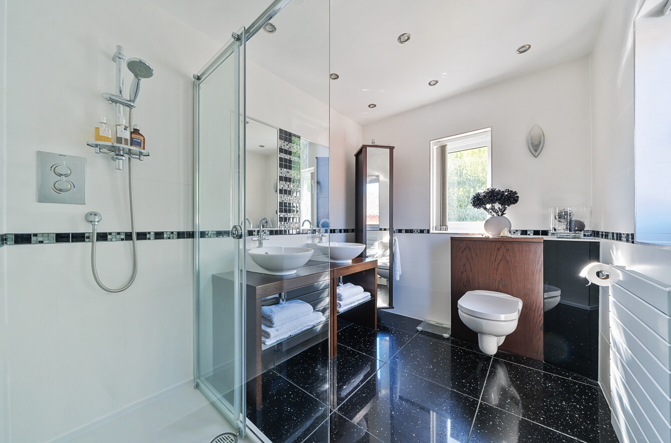 The principal bedroom benefits from triple fitted wardrobes with interior lighting, a contemporary en-suite shower room that is fully tiled with Porcelanosa tiles, twin sinks and a Large Matki walk-in shower unit with Bristan thermostatically controlled shower.