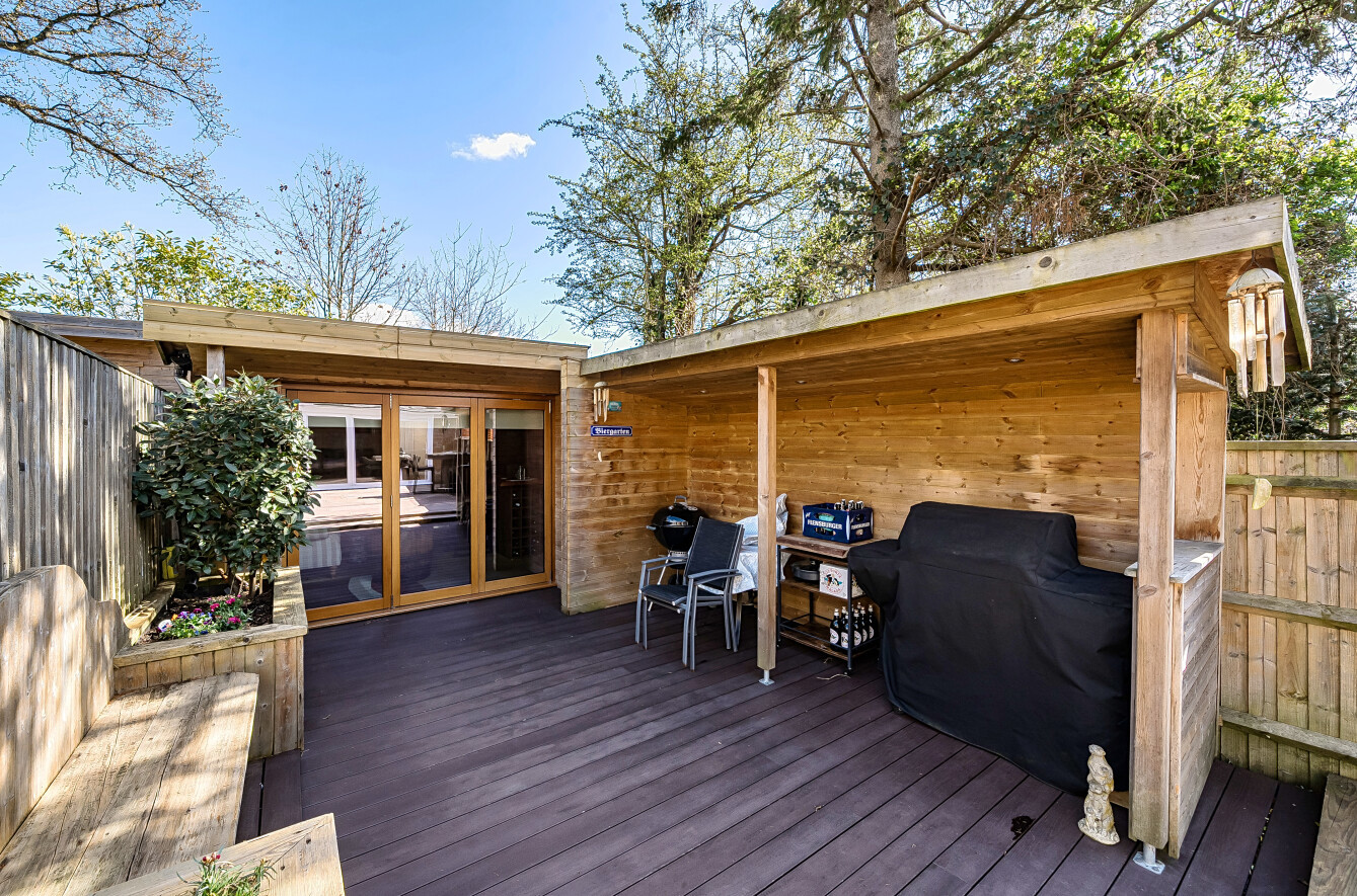 Upstairs, the first floor offers three well-proportioned bedrooms and a modern family bathroom, providing comfortable and flexible accommodation for families or professionals alike. The rear garden has been carefully designed to include a fantastic bar and entertaining space, creating a unique and sociable outdoor setting ideal for hosting friends, summer evenings, and weekend gatherings. Offering approximately 1,183 sq ft of accommodation, this attractive home blends practical living space with stylish enhancements in a desirable layout.