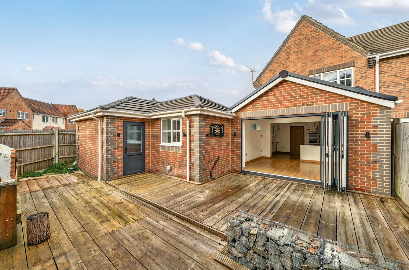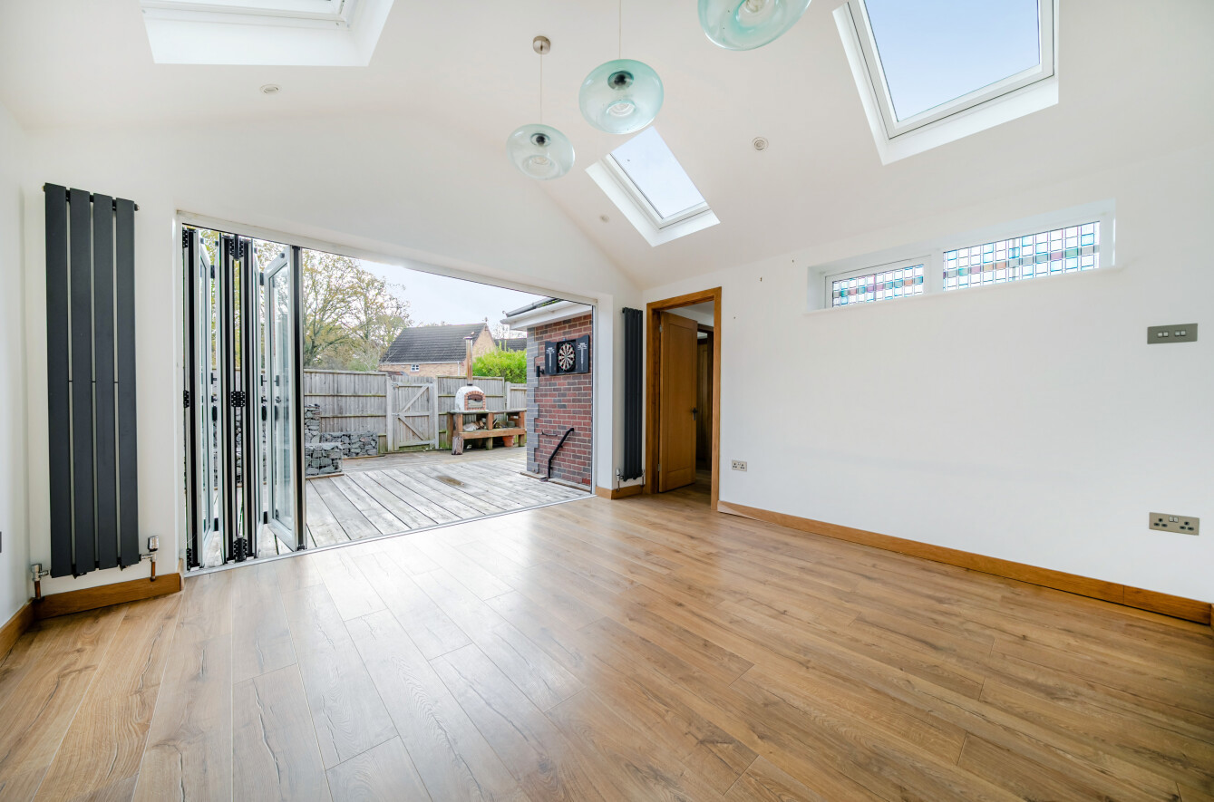 A particular highlight is the bi-fold doors that span the width of the extension, seamlessly connecting the indoor living space to the beautifully decked rear garden. These doors allow for an abundance of natural light while creating a perfect flow for summer gatherings.
