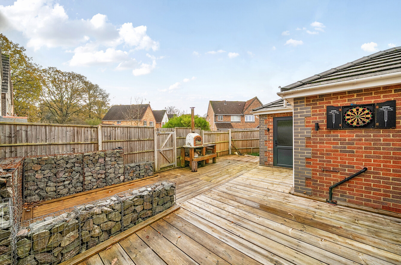 The enclosed rear garden has been thoughtfully designed for low-maintenance enjoyment. A decked area provides the ideal setting for outdoor dining, barbecues, or relaxing in the warmer months. The garden offers a private and secure space, making it suitable for both children and pets.