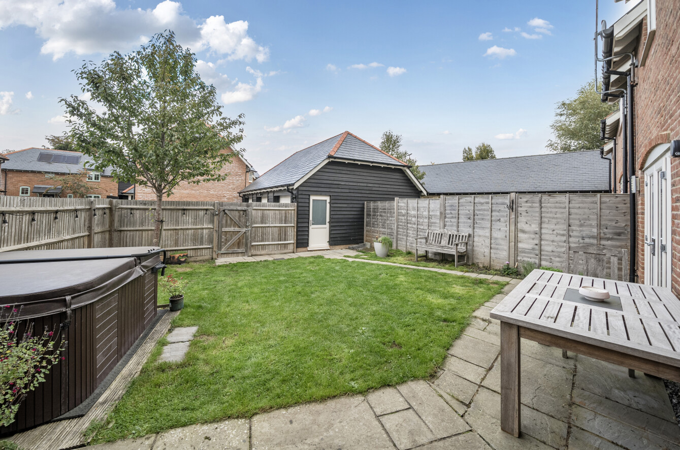 Outside, the rear garden provides a private and tranquil retreat, enjoying a pleasant outlook and designed for easy maintenance. The garden features a combination of block paving and lawn, ideal for relaxing or entertaining during warmer months. Beyond the garden lies a driveway providing ample parking and access to the detached garage, located conveniently at the rear of the property.