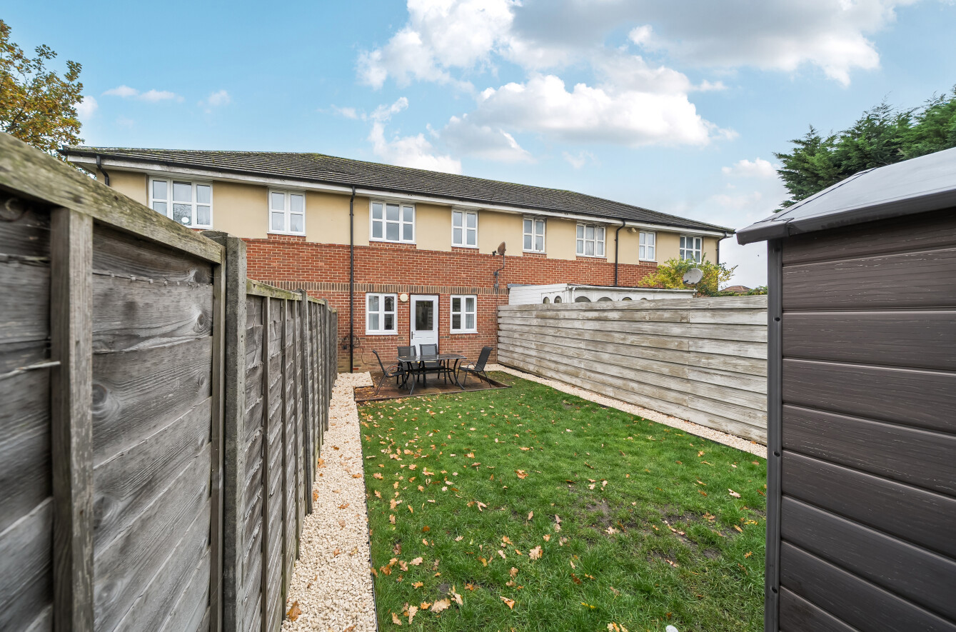 There is also a family bathroom featuring a three-piece suite comprising a panelled bath, low-level W.C., wall-mounted vanity sink unit, and a heated bathroom mirror for added comfort and practicality. To the rear, there is a fully enclosed garden with separate patio and lawn areas, as well as a storage shed - perfect for outdoor relaxation or entertaining.