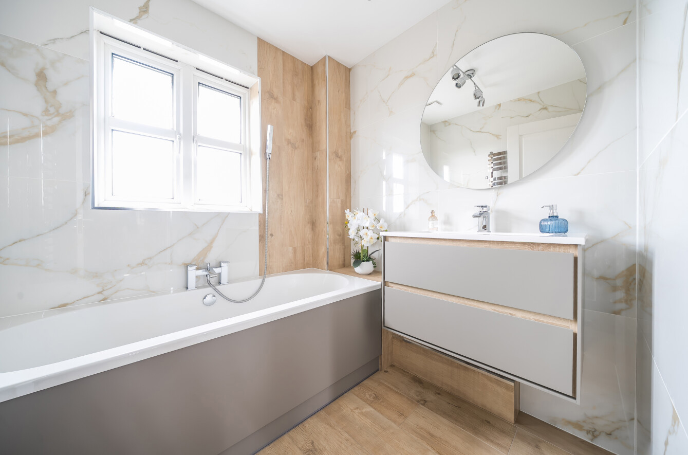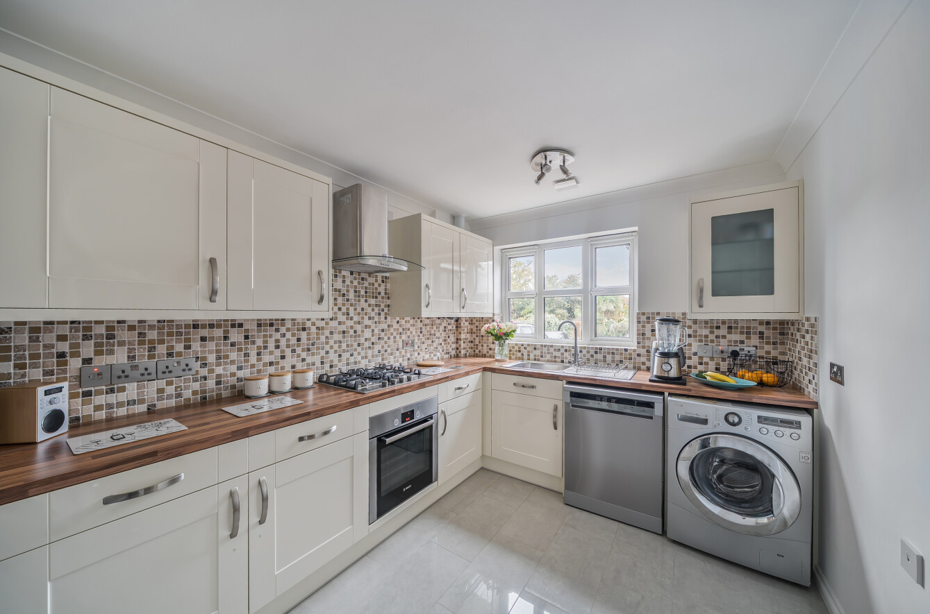 To the front of the house there is a modern fitted kitchen featuring a range of fitted wall and base units and integrated appliances, with additional space for freestanding ones. The home also benefits from a 2022-installed Vaillant EcoFit boiler, ensuring energy-efficient heating and peace of mind.