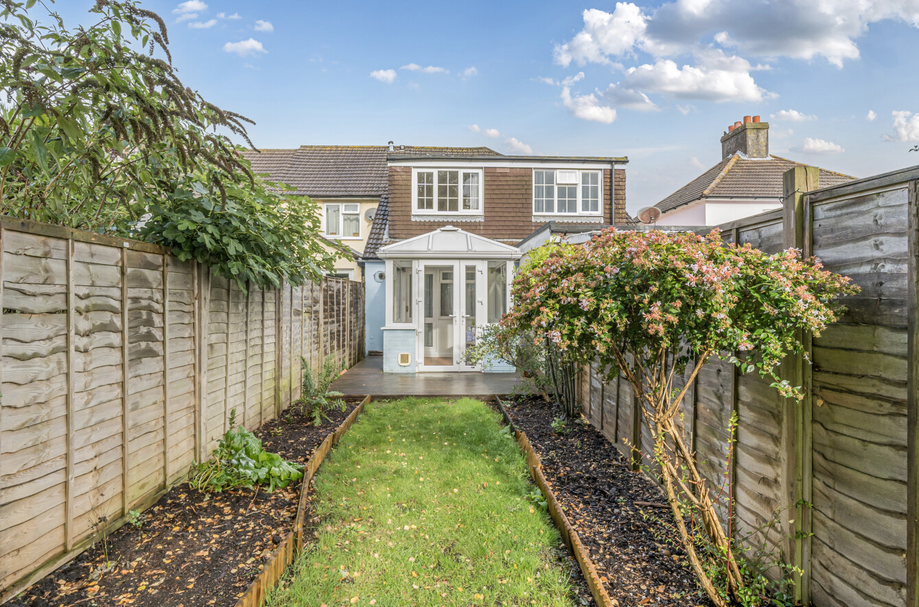 The generously sized kitchen at the rear of the home is fitted with modern appliances and flows seamlessly into a spacious conservatory, which in turn opens onto a sun-filled garden.