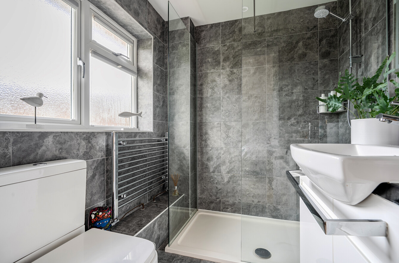 Upstairs, the principal bedroom is generously proportioned and benefits from a stylish en-suite shower room. Three further bedrooms offer versatility for family, guests, or additional workspace, complemented by a beautifully finished family bathroom.