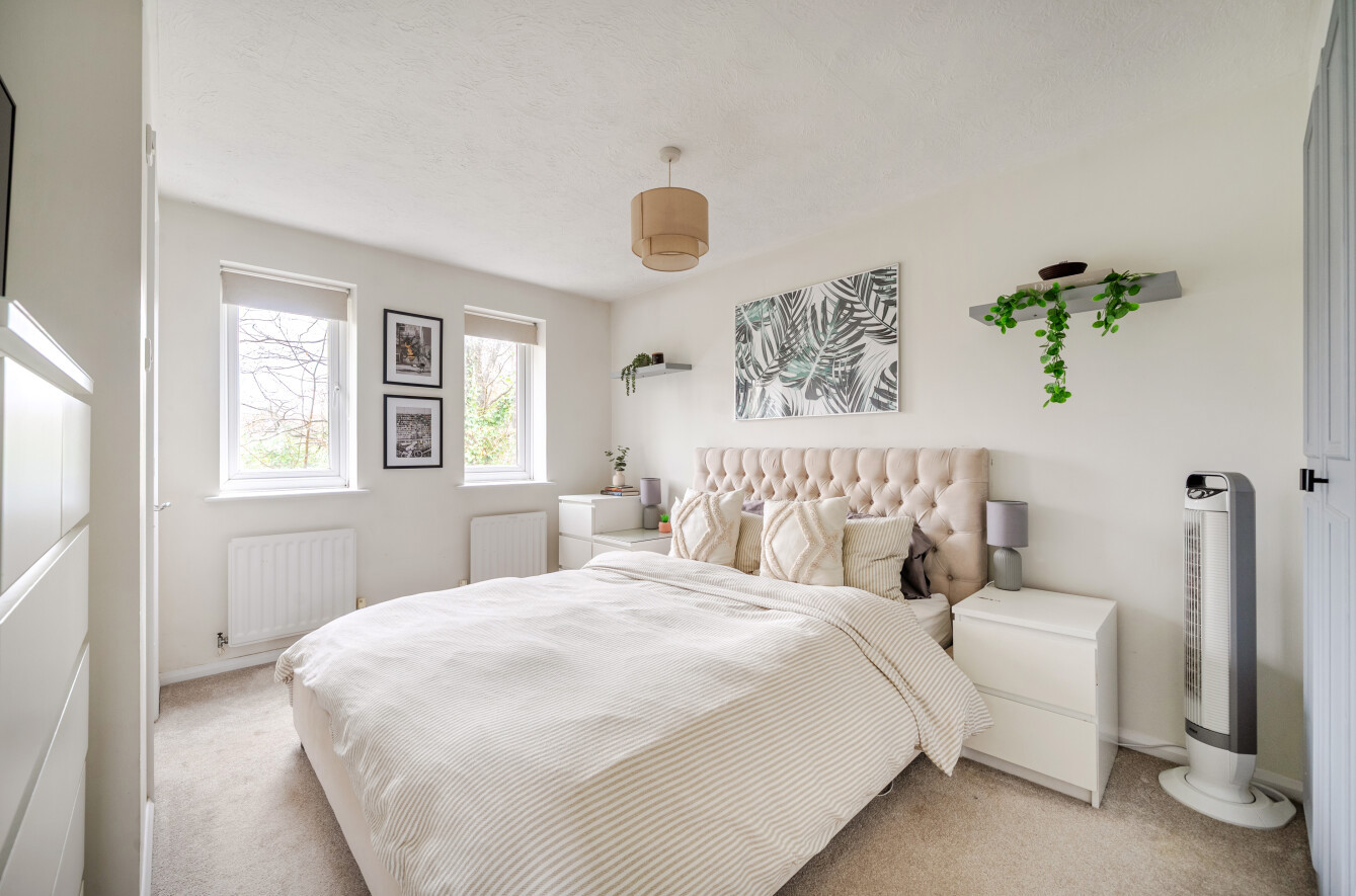 Upstairs, the first floor continues the impressive standard of finish throughout. The principal bedroom is well proportioned and beautifully presented, offering a calm and comfortable retreat. The second bedroom is equally well finished and versatile, ideal as a guest room, home office or nursery. Both bedrooms benefit from a sense of light and space, complemented by neutral décor and quality fittings. The modern bathroom and additional shower room are finished with stylish tiling and contemporary sanitaryware, providing convenience and a touch of luxury.