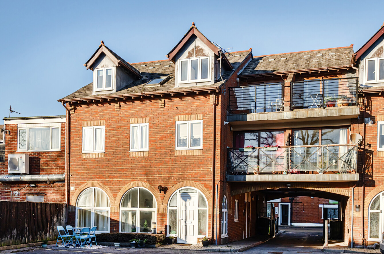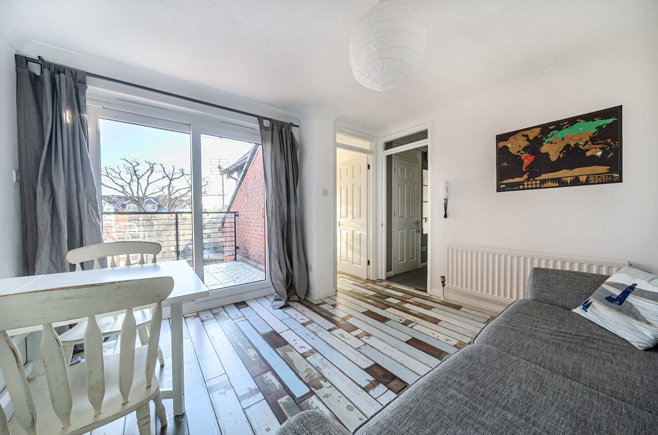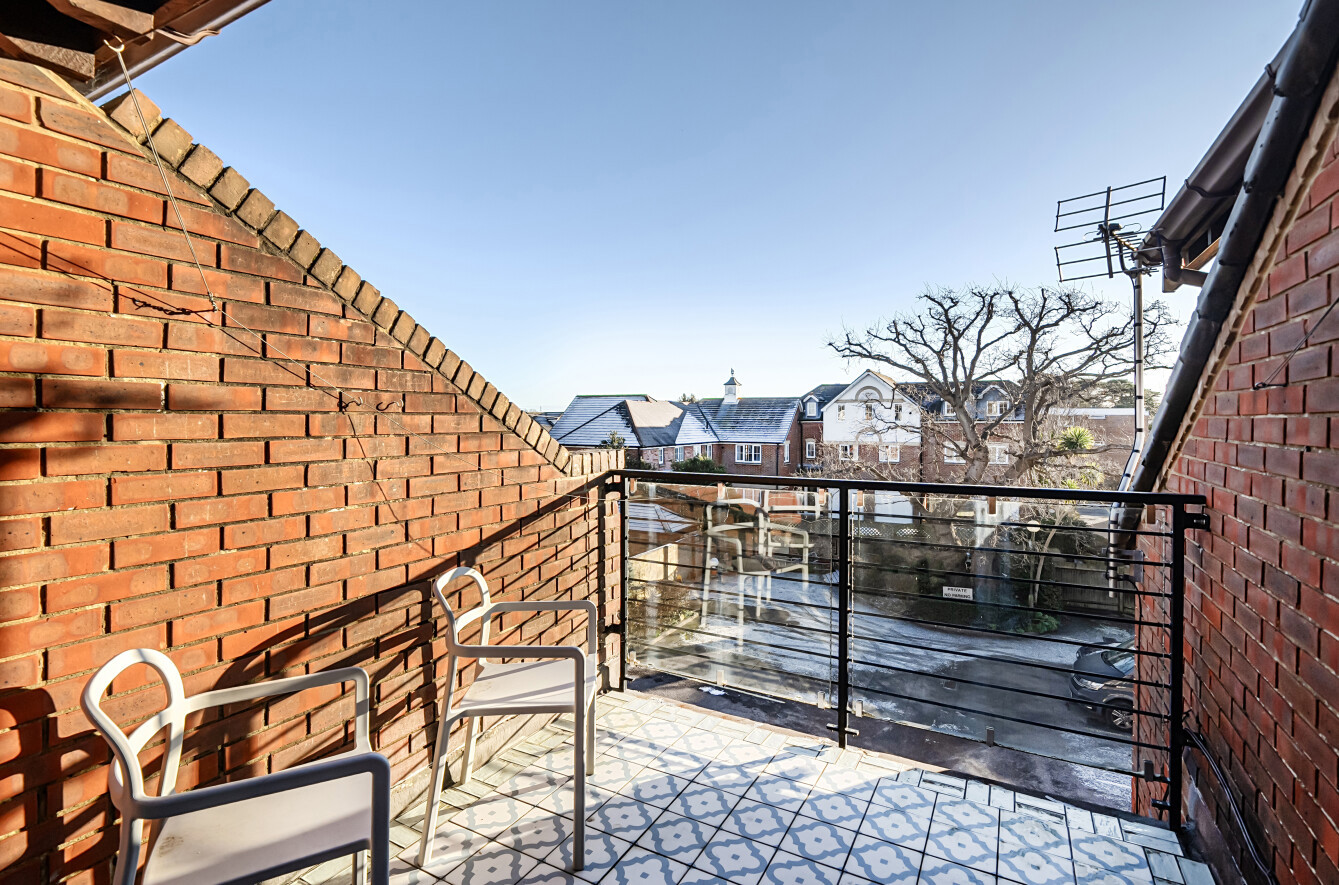 The property is in good decorative order throughout and features two well-proportioned bedrooms, making it ideal for a range of buyers including first-time purchasers, downsizers or investors. The living accommodation is bright and welcoming, with the main living room enjoying a pleasant southerly aspect and direct access onto a generous balcony. Unusually spacious for an apartment, the balcony provides ample room for outdoor seating and dining, effectively creating a private courtyard-style space ideal for relaxing or entertaining.