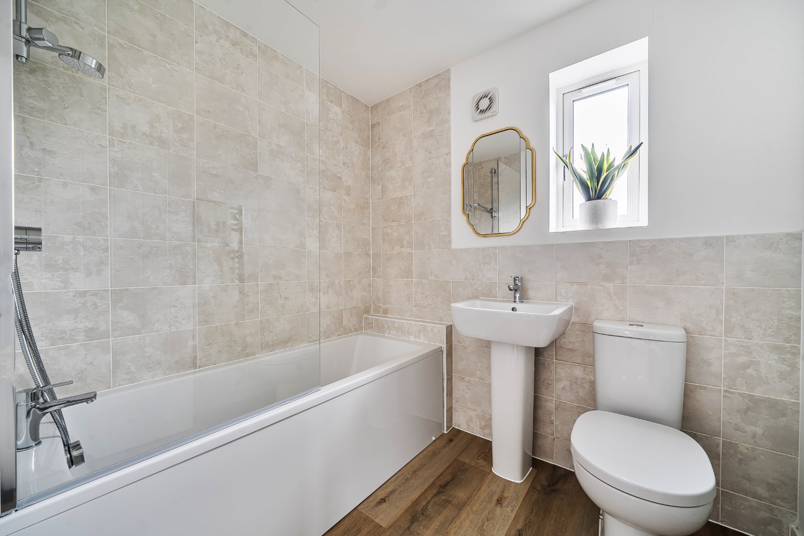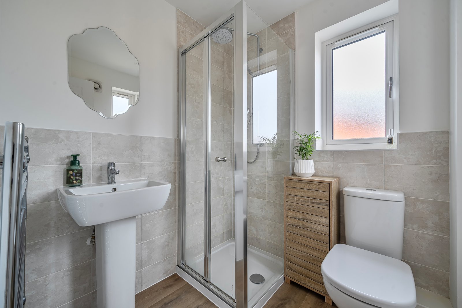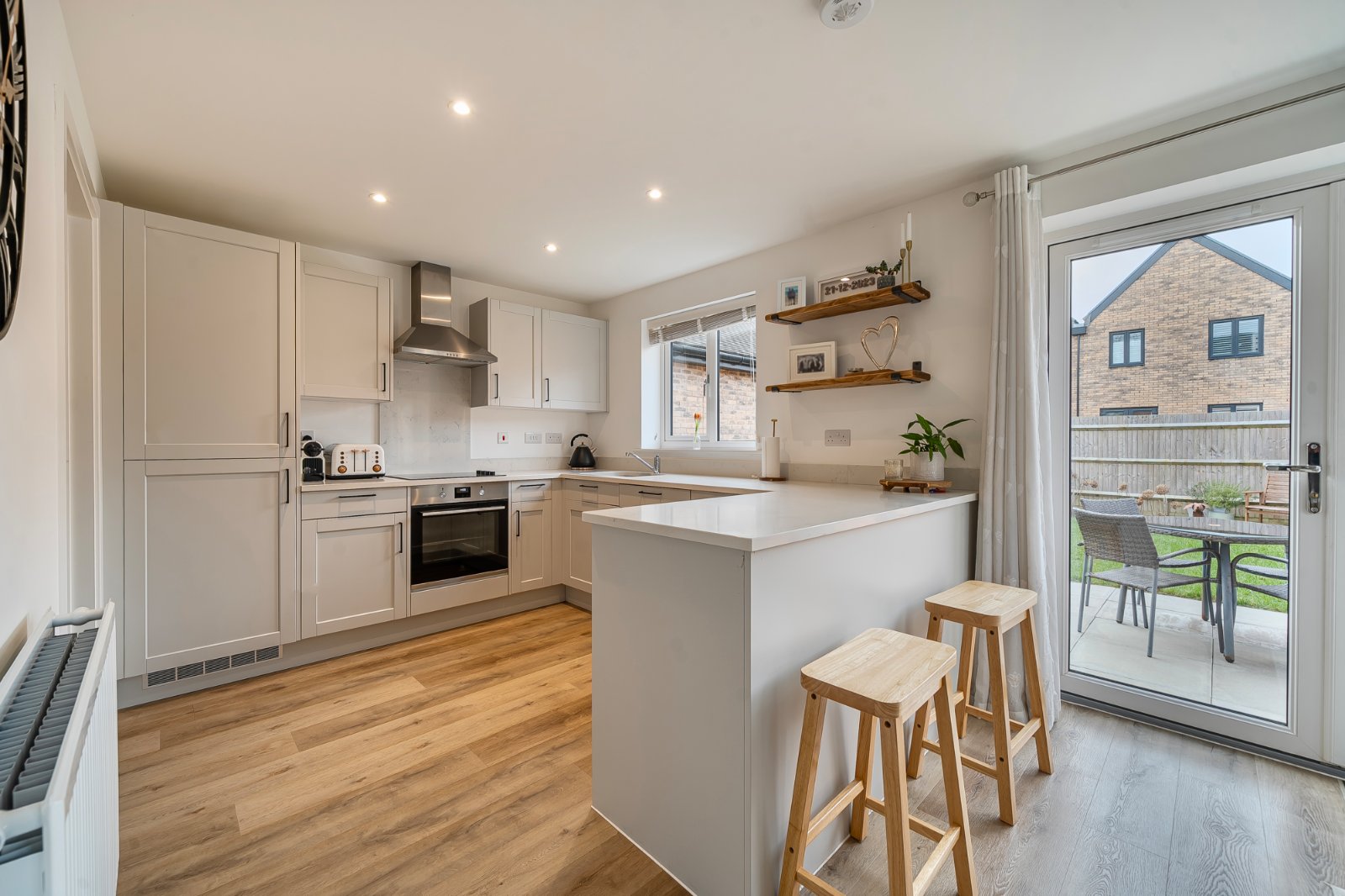 Upstairs, three well-proportioned bedrooms offer flexible accommodation. The generous principal bedroom benefits from a stylish en-suite shower room, while two further bedrooms are perfectly suited to family living, guest accommodation, or home working.