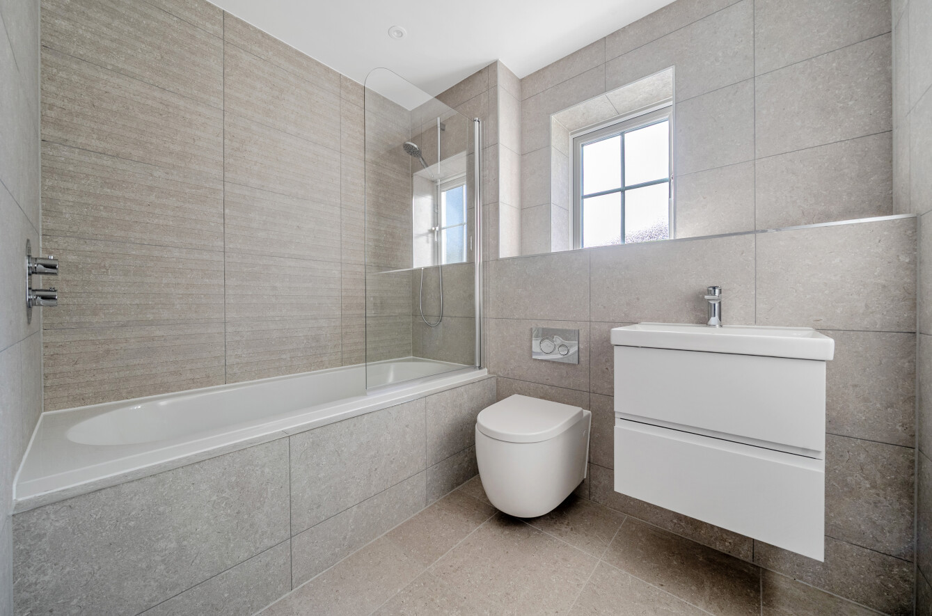 Upstairs, three well-balanced bedrooms provide flexible accommodation for families, professionals, or those working from home. The main bedroom offers excellent proportions, while the remaining rooms adapt easily to guest, children’s, or office use. A modern family bathroom and an additional WC complete the first floor, finished with sleek fixtures and clean-lined design.