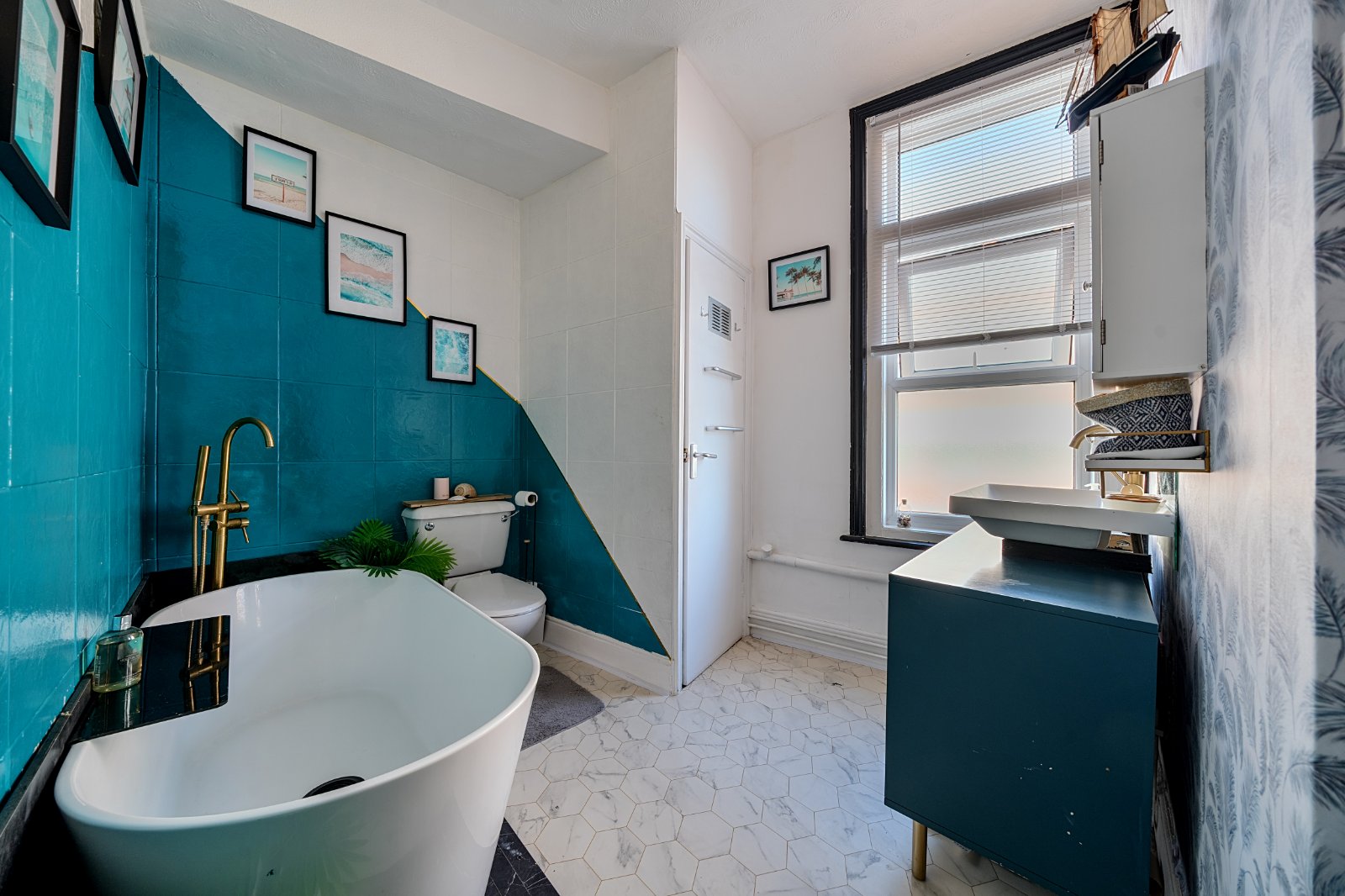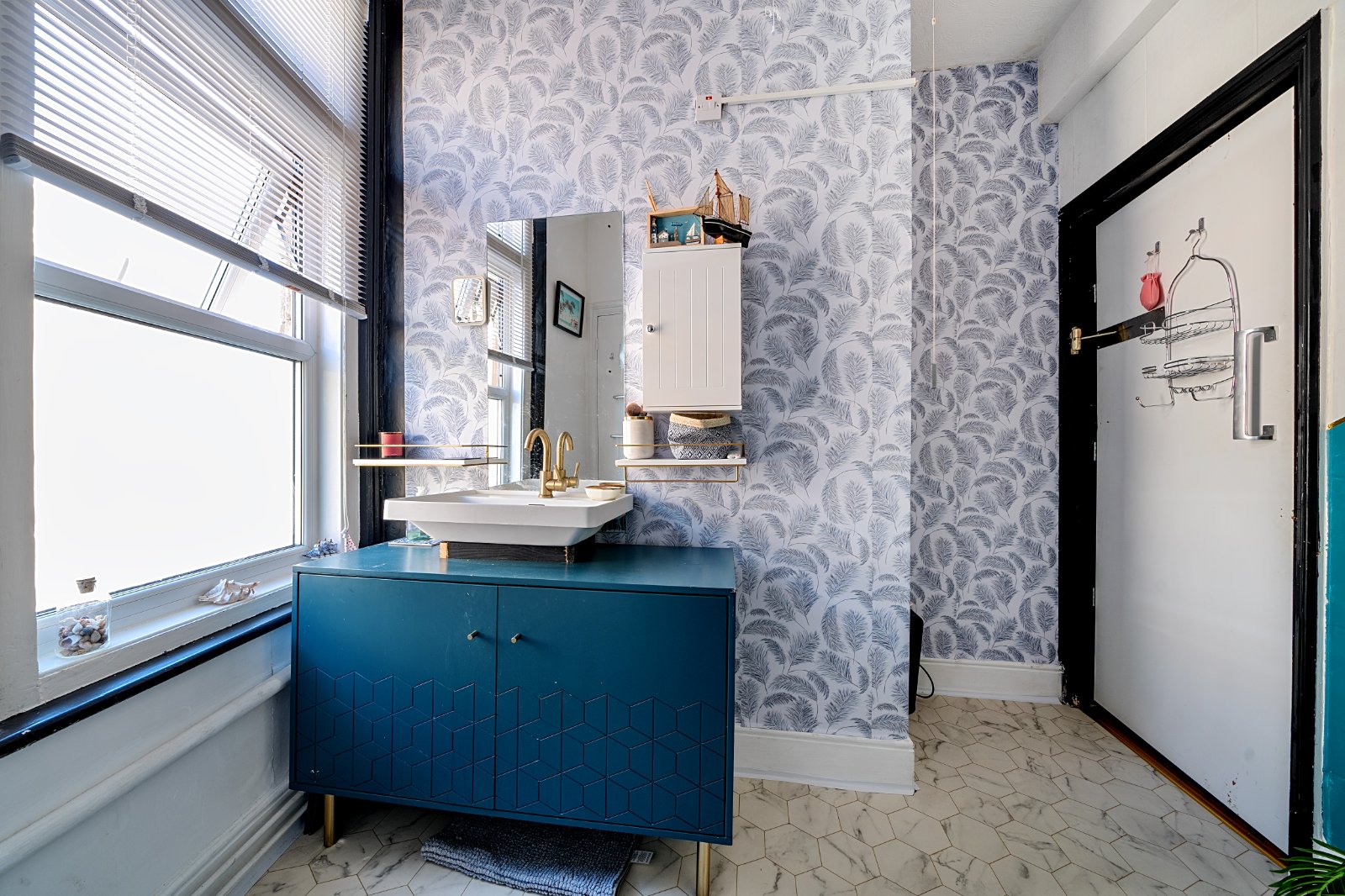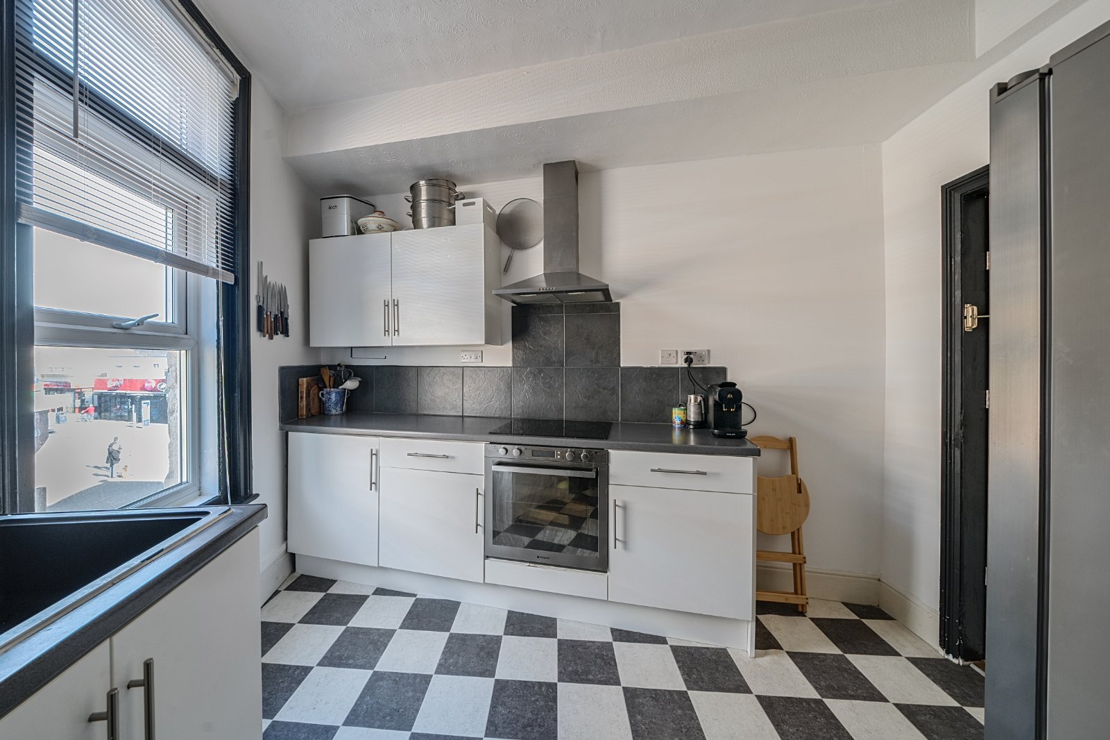 The master bedroom is centrally positioned, offering a quiet retreat, while the fully fitted kitchen provides ample storage and modern appliances. At the rear of the property, you'll find a contemporary bathroom, finished to a high standard.