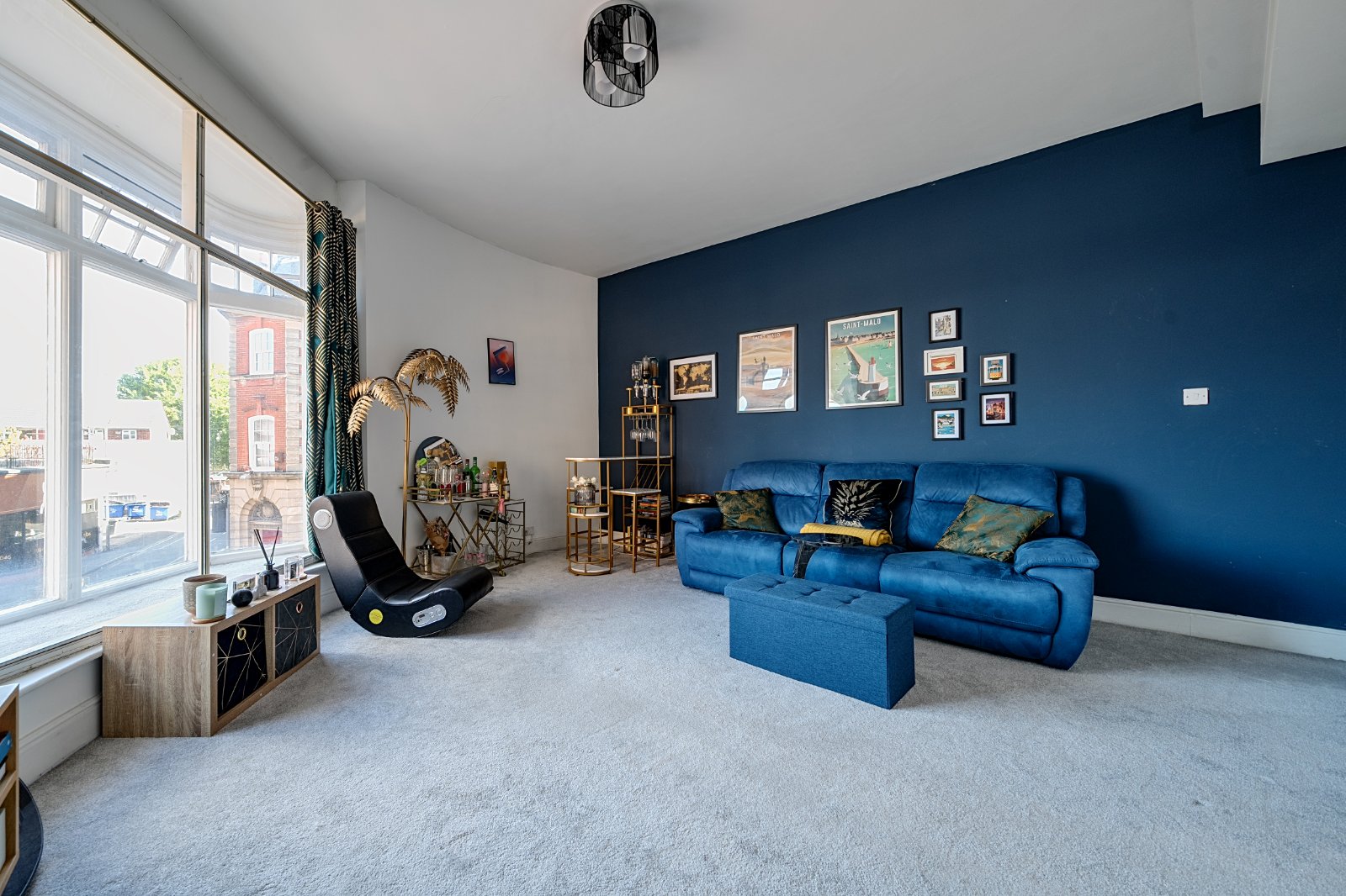 Access to the property is via a secure buzzer entry system, leading into the communal areas. Once inside, you’re welcomed by a spacious open-plan lounge and dining area at the front of the property. This bright and airy space features high ceilings and a beautiful bay window that allows an abundance of natural light to flood the room.