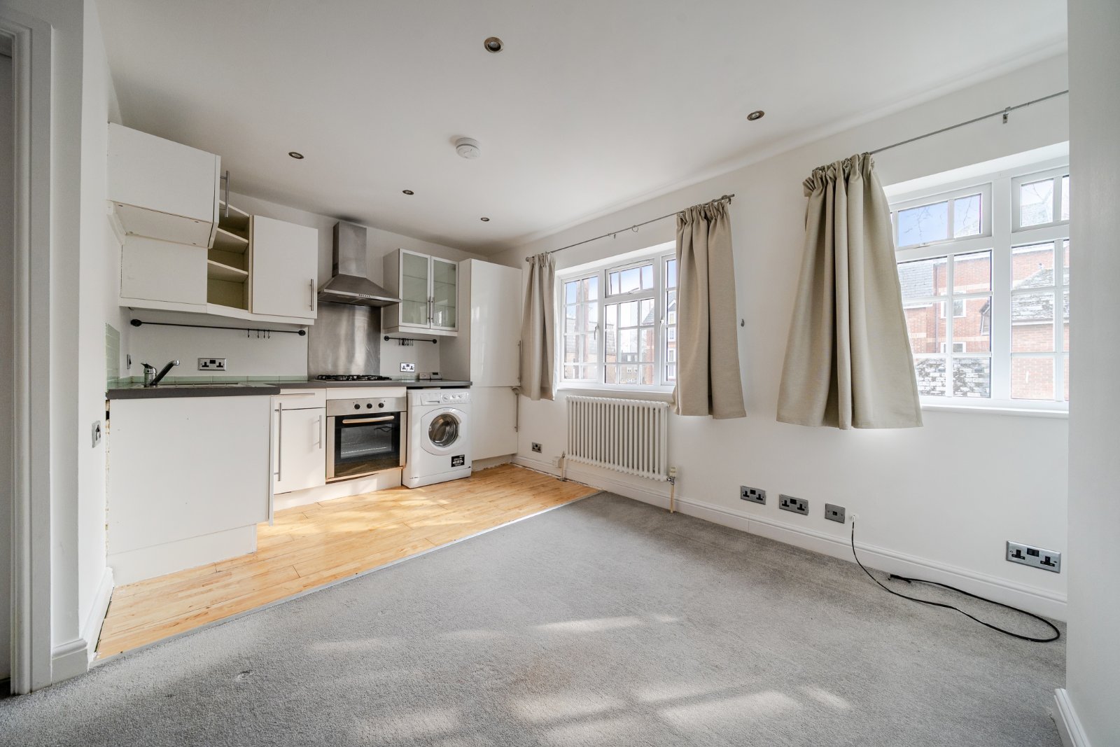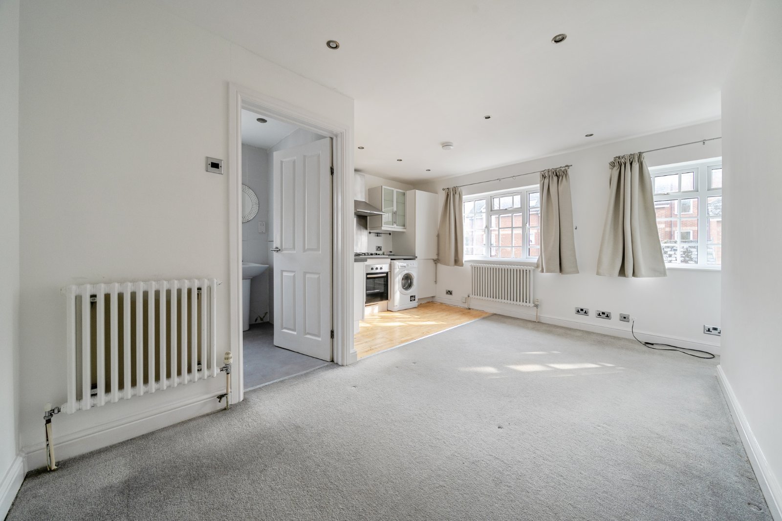 You enter the property through a communal entrance, which provides access to this flat and the ground floor. Inside, you'll find a bright and spacious open-plan living area featuring a fitted kitchen and two large windows that fill the room with natural light. The bedroom is located at the rear of the apartment, offering a peaceful retreat, and the property also includes a shower room.