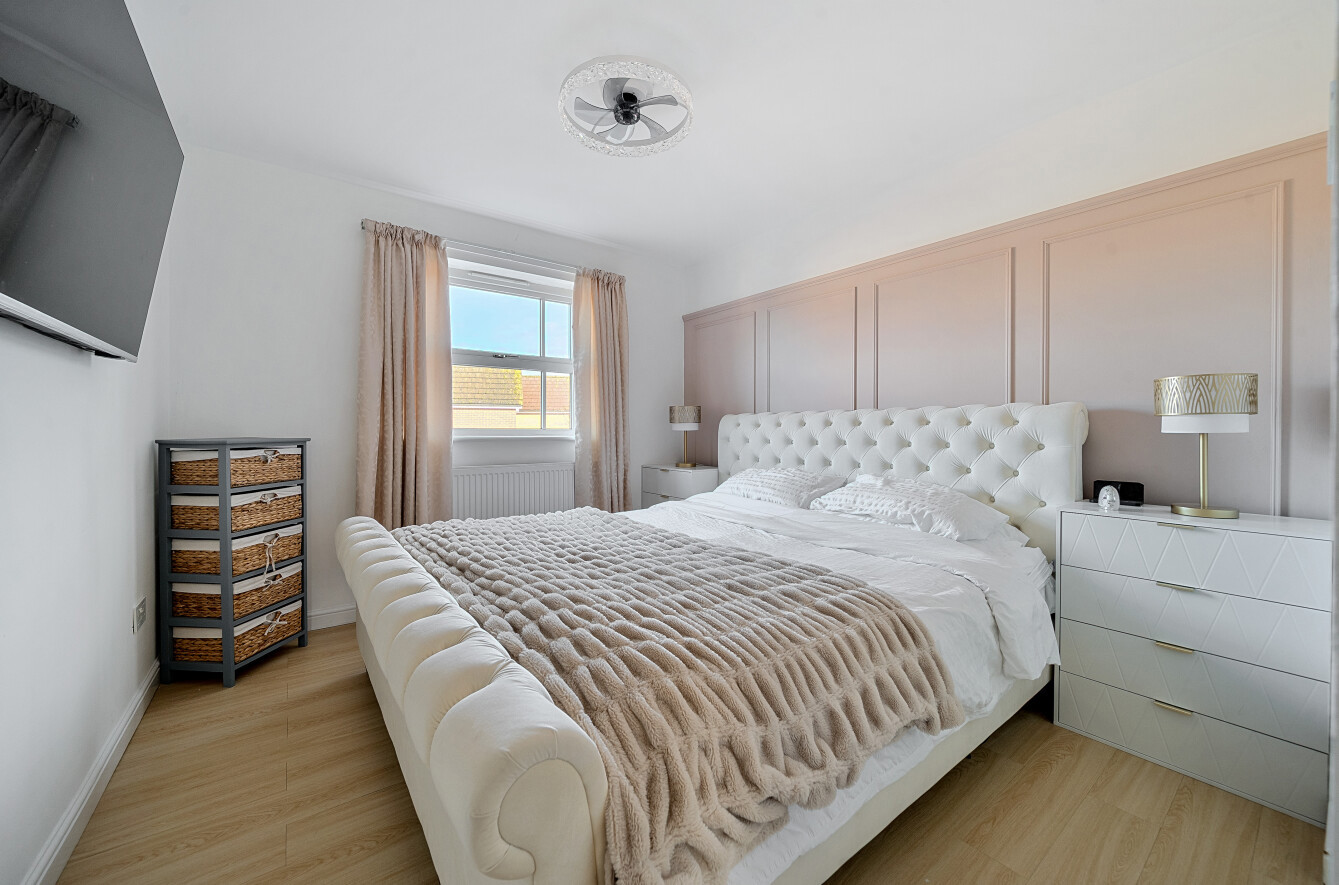 On the first floor, the principal bedroom benefits from fitted wardrobes and a luxury en-suite shower room with two further double bedrooms, which are both served by the luxury family bathroom.