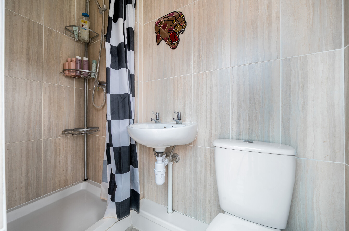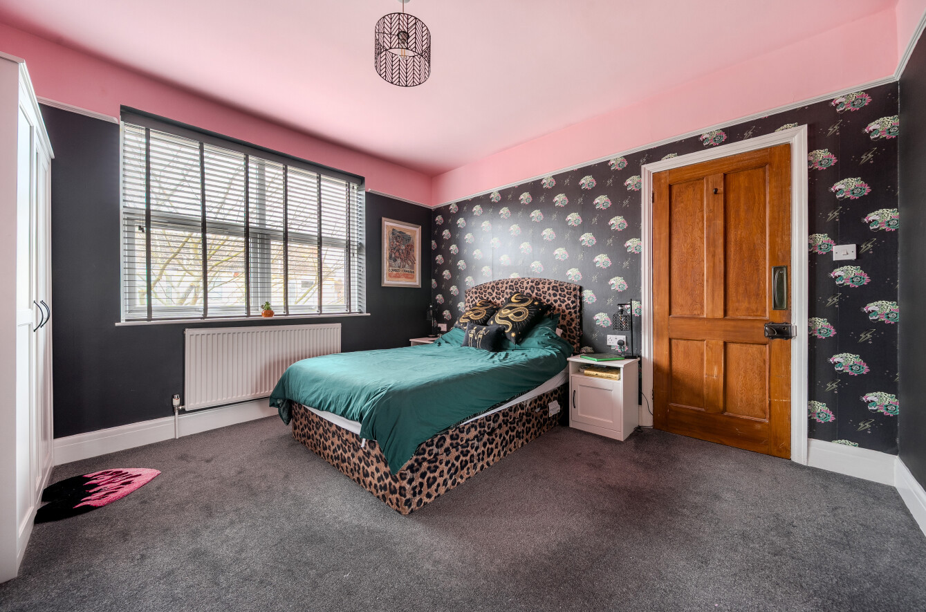 Upstairs, the first floor offers three well-proportioned bedrooms, including two spacious doubles and a third ideal as a child’s room, home office or nursery. A family bathroom completes the accommodation.