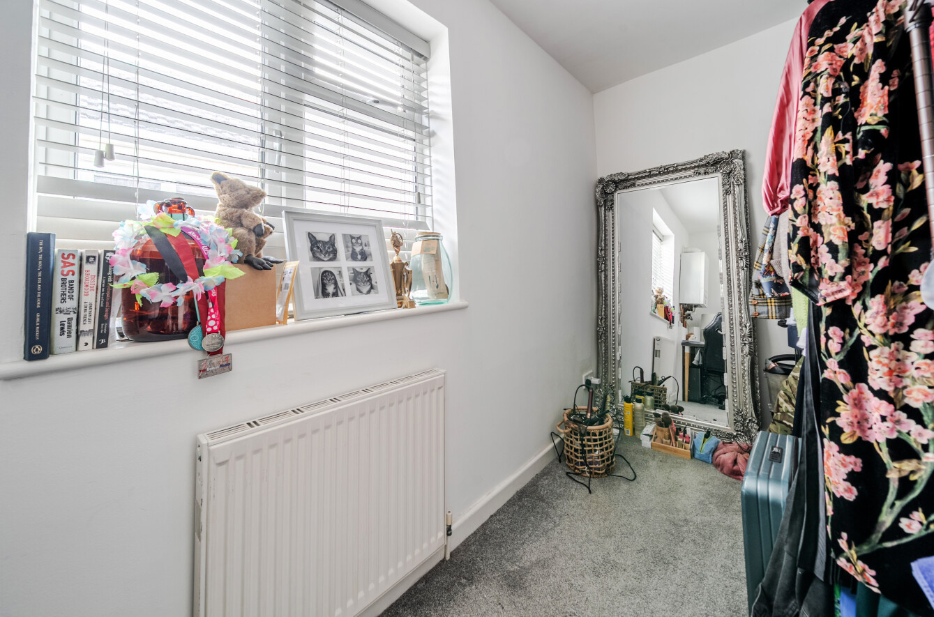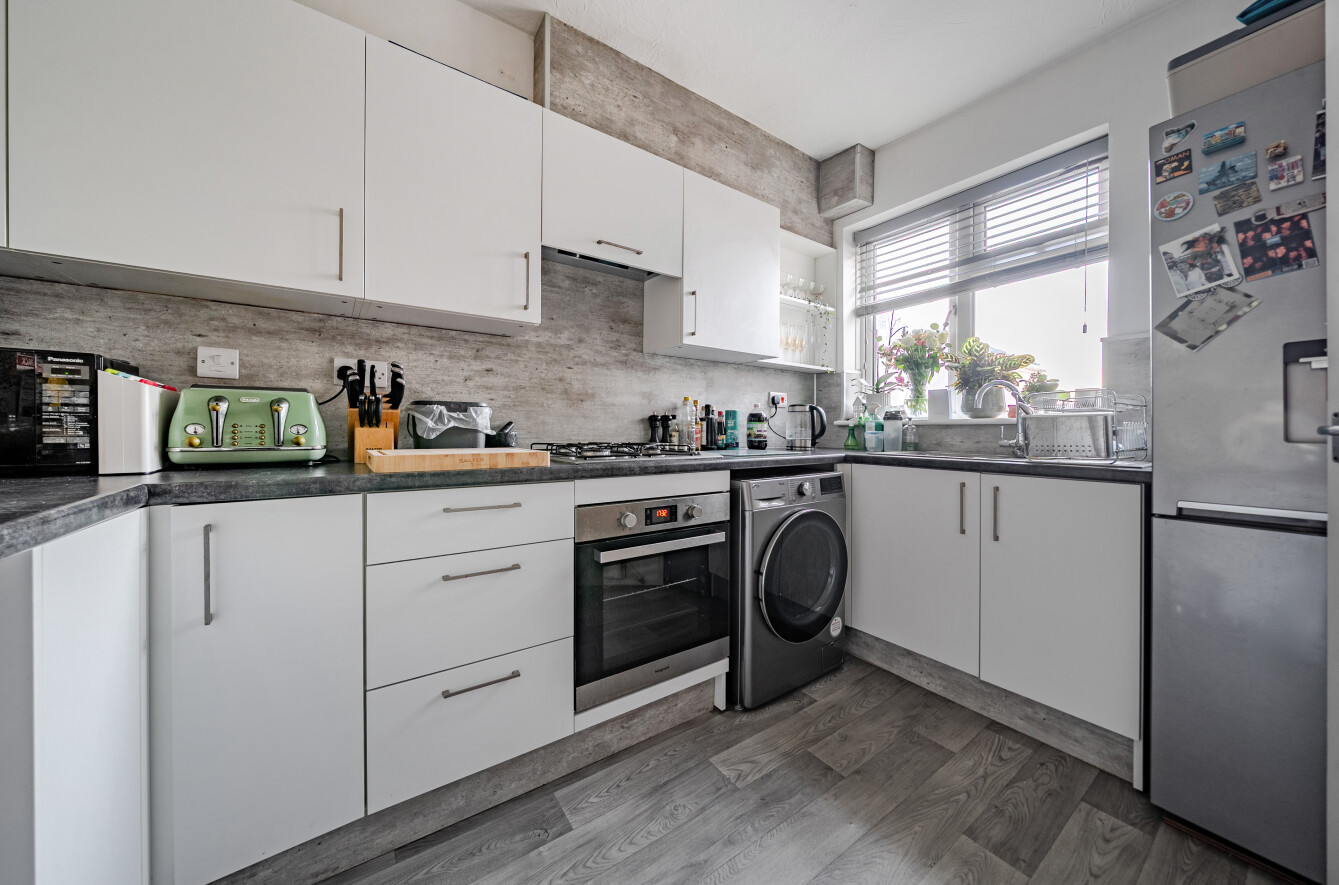 The accommodation comprises a bright sitting room with a charming bay window, a fitted kitchen, two bedrooms, and a bathroom, all arranged to provide comfortable and practical living space. The layout makes excellent use of the available footprint, creating a welcoming home suitable for first-time buyers, investors, or downsizers.