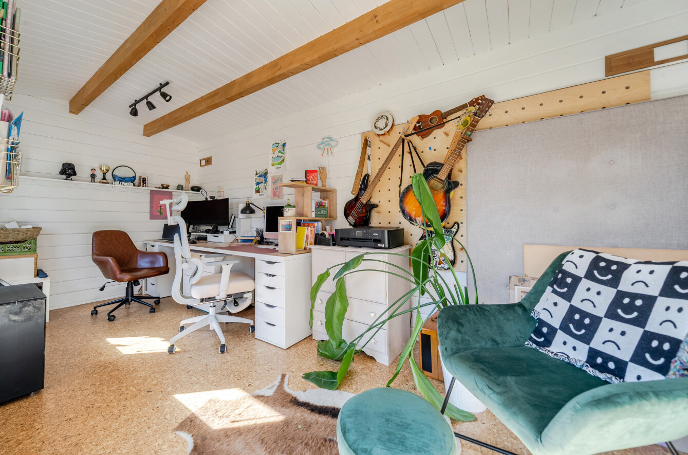 Externally, the property benefits from a charming garden room, providing a versatile space for work or relaxation. The home combines practicality with potential, making it ideal for modern living.