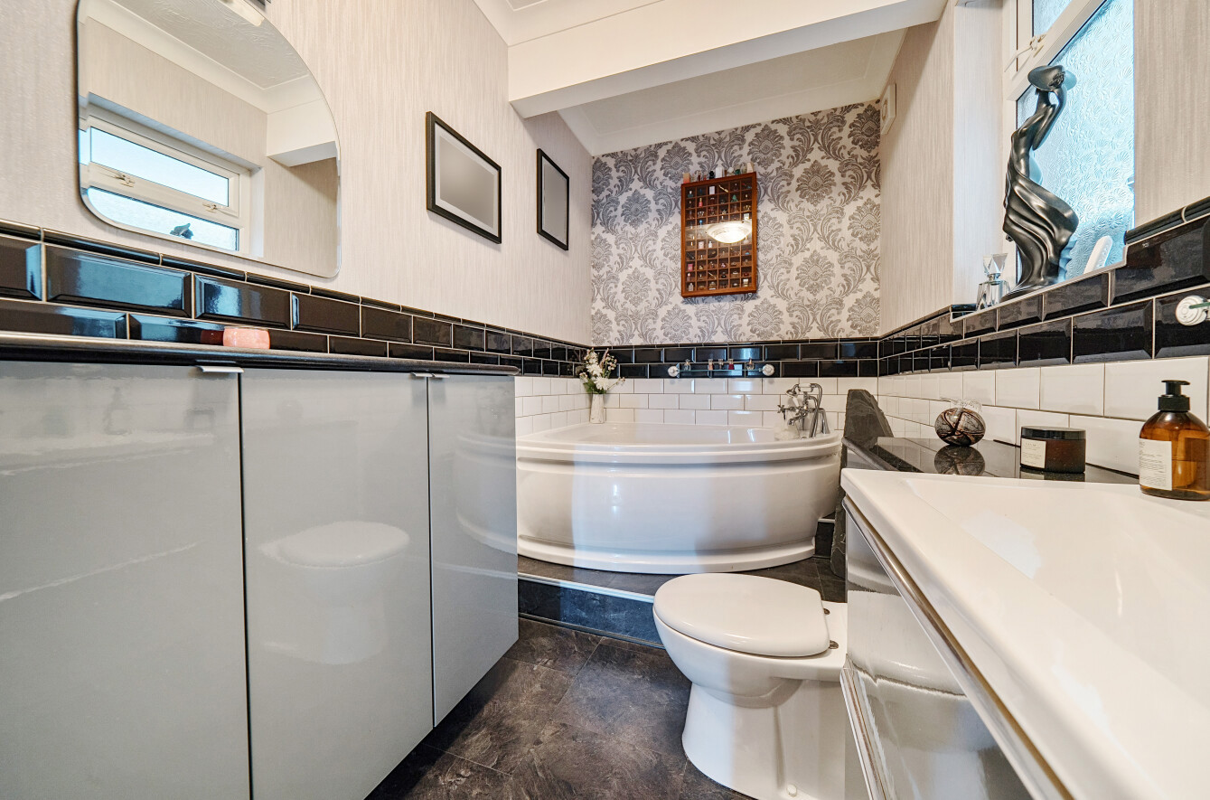 Two well-appointed double bedrooms are all served by the family bathroom with a feature roll corner bath and separate shower. Both bedrooms benefit from built-in wardrobes. The principle bedroom also features an additional room with direct access to the garden and is currently utilised as a home office. A useful utility room / guest cloakroom completes the accommodation.