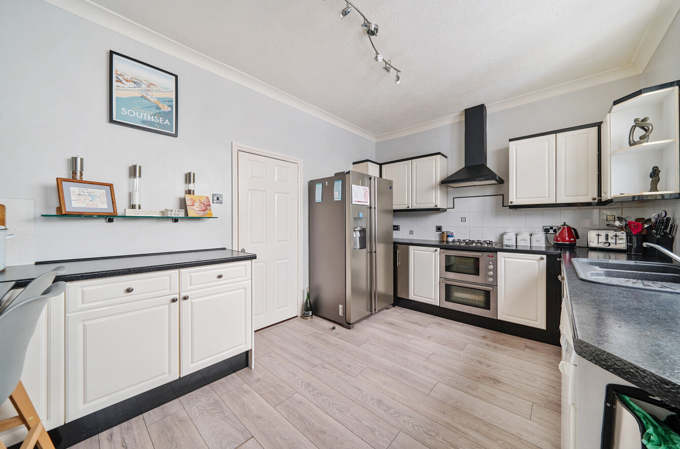Located in the heart of the historic seafront of Southsea moments from the beach and promenade, and directly opposite the beloved Canoe Lake, this residence encapsulates seaside living. The property is entered via a welcoming hallway with doors leading to all principal reception rooms. A distinguished sitting/dining room is perfectly placed at the front of the home, enjoying period features as well as benefitting from traditional high ceilings and a statement fireplace. Offering ample room for relaxing and/or entertaining in addition to formal dining, the room also has feature bay window view views over Canoe Lake. The accommodation continues to delight with a modern fitted kitchen with a range of clever storage solutions leading to a light and bright conservatory.