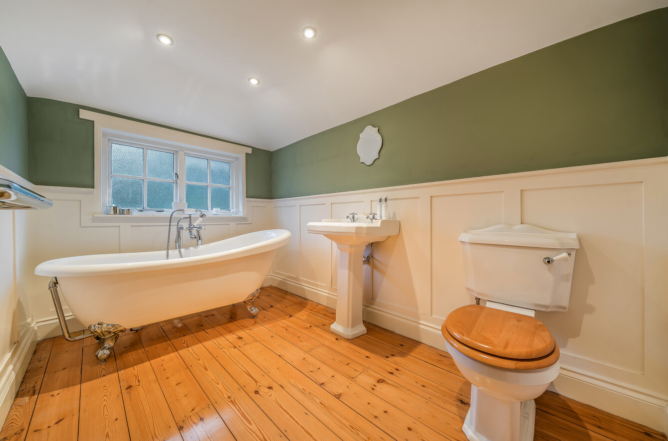 The accommodation is complemented by a stunning, newly re-fitted walk-in shower room with double vanity basins, and a further family bathroom featuring a luxurious roll-top bath. Externally, the rear garden extends approximately 75ft, providing a peaceful, enclosed space for outdoor dining, gardening, or leisure.