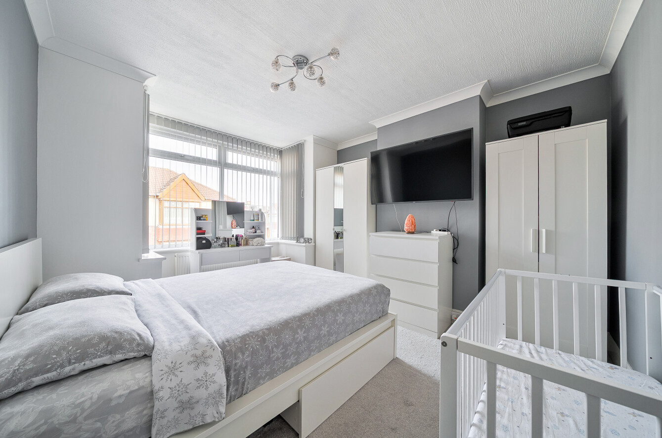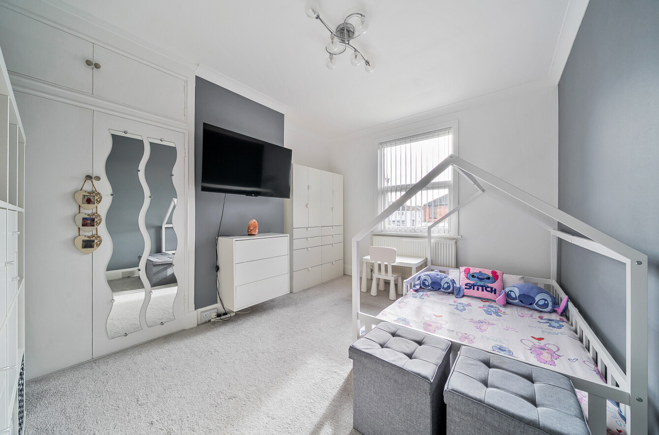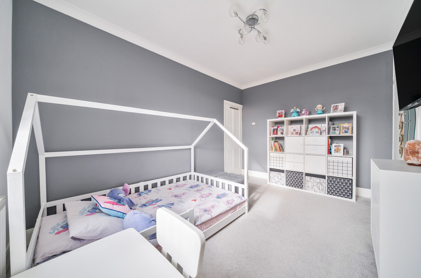 Upstairs, the property benefits from three bedrooms, including a well-sized principal bedroom with bay window feature, a good-sized second bedroom, and a third bedroom ideal as a nursery, home office, or guest room. The family bathroom is also located on this floor.