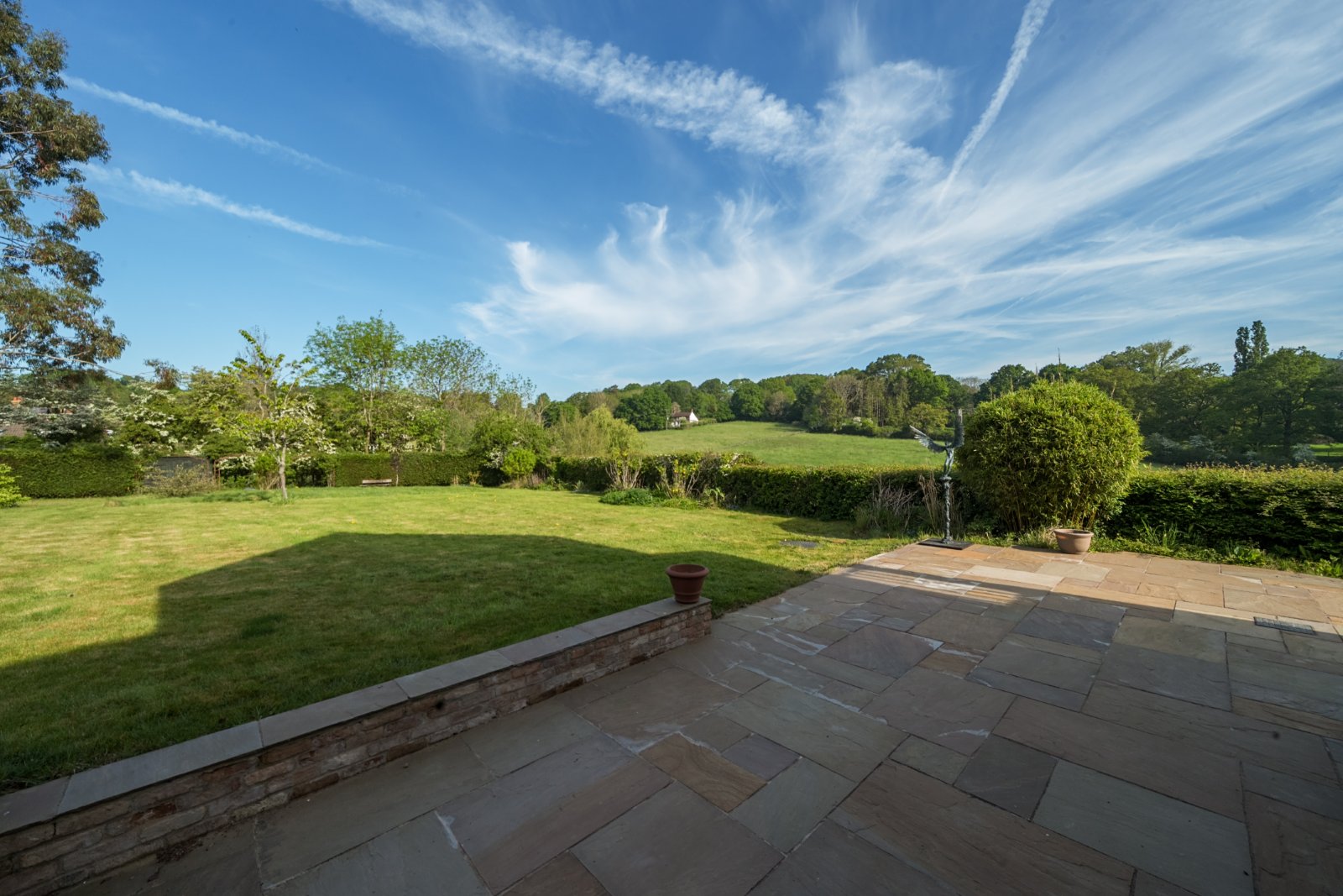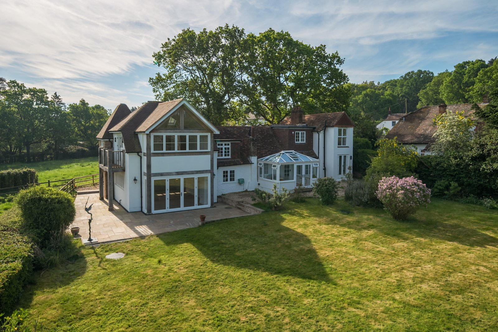 A large sun terrace adjoins the house, perfect for al fresco dining and summer gatherings. The expansive lawn is bordered by mature hedging, trees, and well-stocked beds that ensure privacy and year-round interest. Additional features include a large garden shed and charming rose arches, adding further character to this idyllic outdoor space. With its perfect blend of old and new, spacious interiors, and stunning setting, this exceptional cottage is a rare find and must be seen to be fully appreciated.