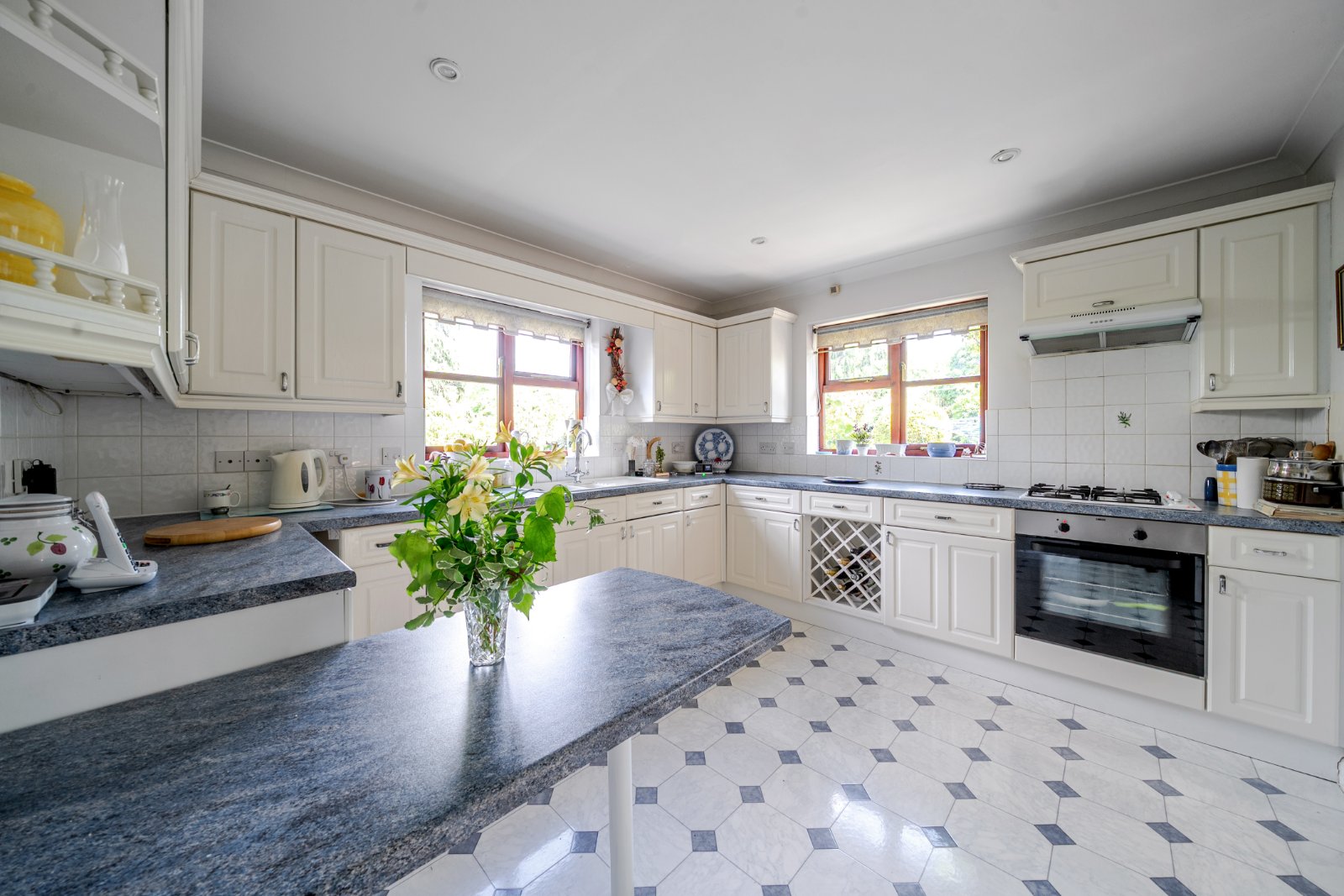 The ground floor is thoughtfully laid out, beginning with a welcoming entrance hall that opens into a spacious sitting room. Featuring a gas fireplace, this inviting space flows seamlessly into a bright conservatory with serene views over the garden. A separate dining room adjoins the well-equipped kitchen, creating a sociable layout ideal for family dining and entertaining. A useful utility room further enhances day-to-day convenience.