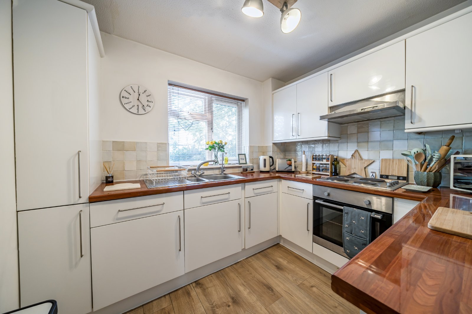 The apartment boasts a bright, generously sized lounge/diner with a charming bay window and direct access to the communal garden — perfect for seamless indoor-outdoor living. A separate, modern kitchen provides ample storage and workspace. The double bedroom includes a built-in wardrobe, while the bathroom features a contemporary three-piece suite.