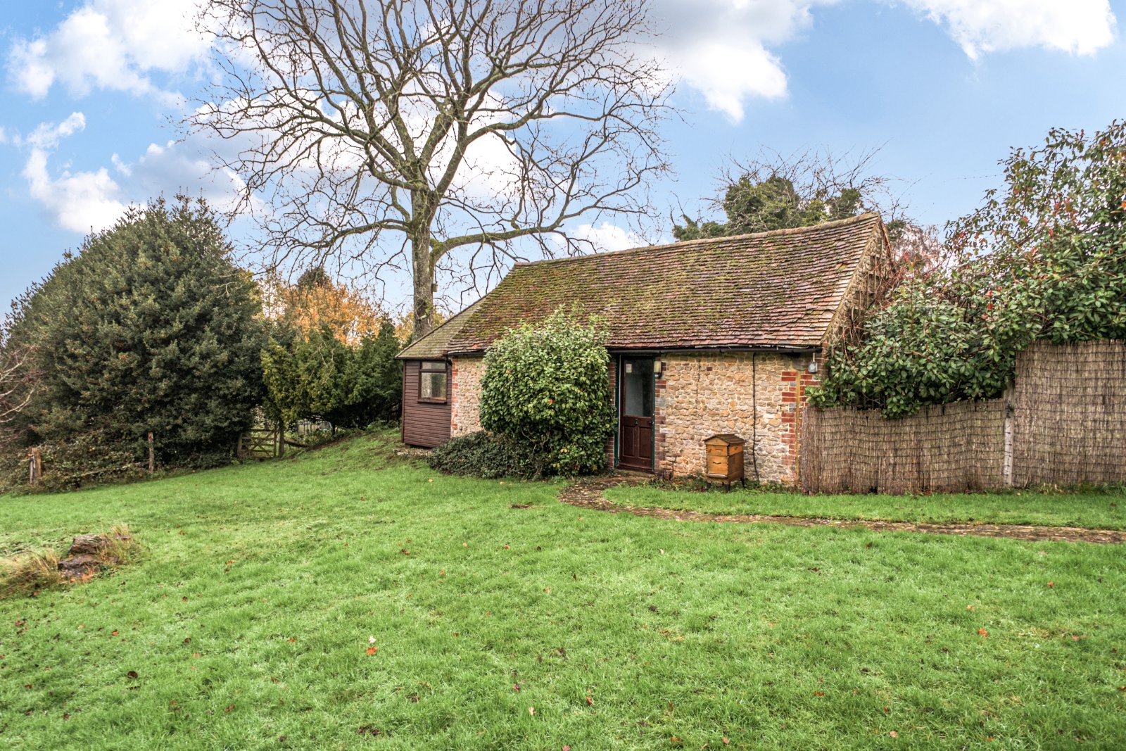 Materials used in construction: Stone under tile roof with timber frame