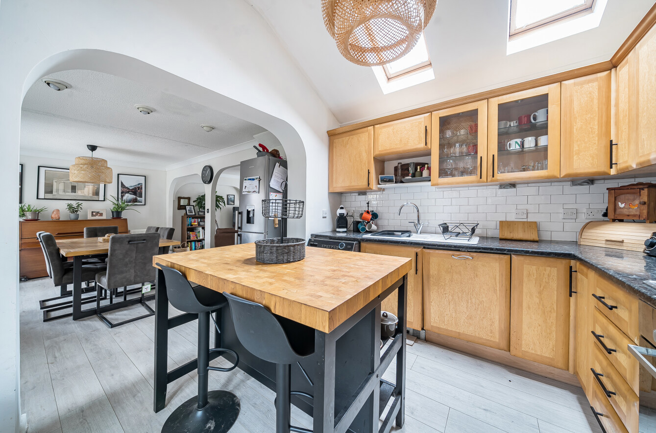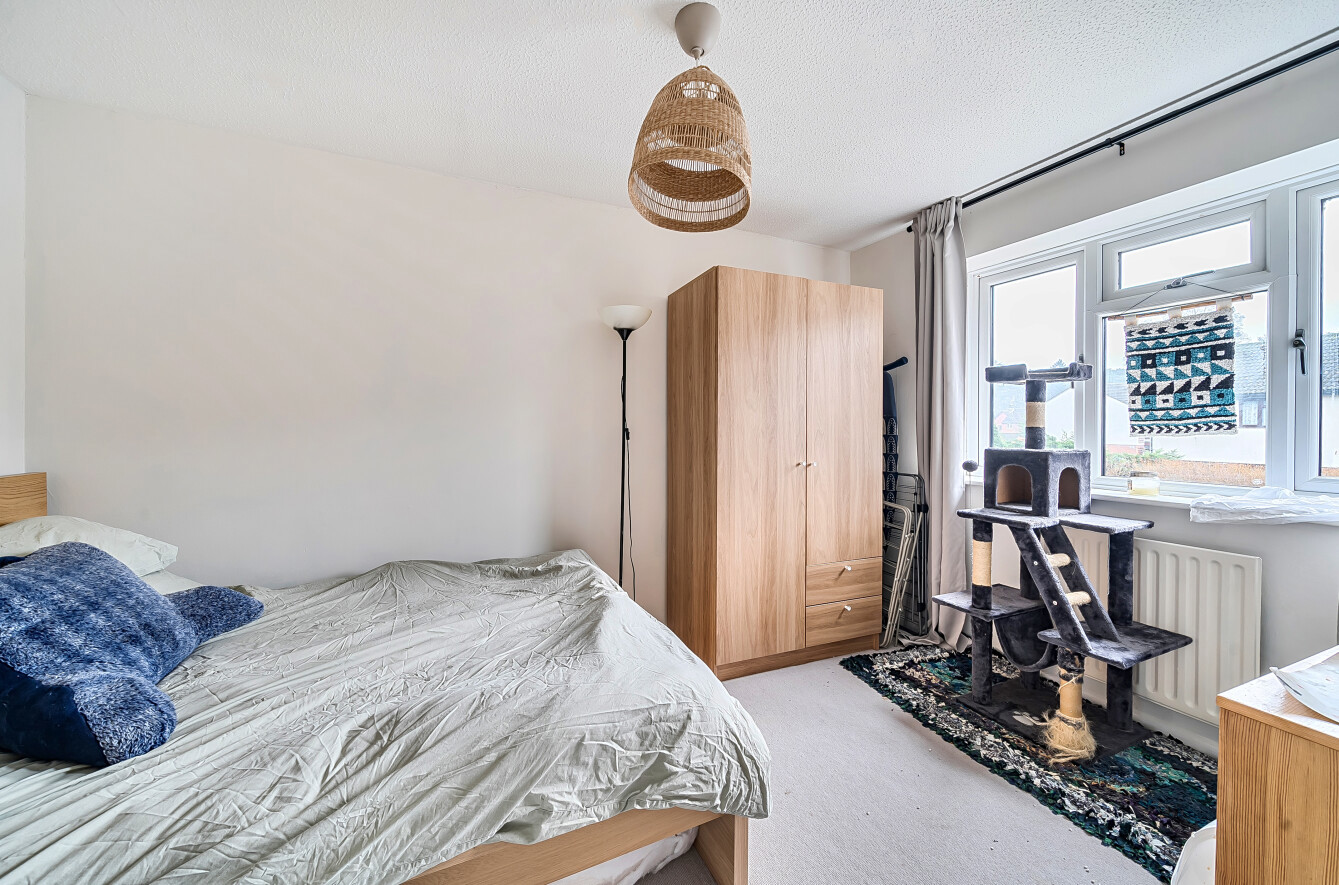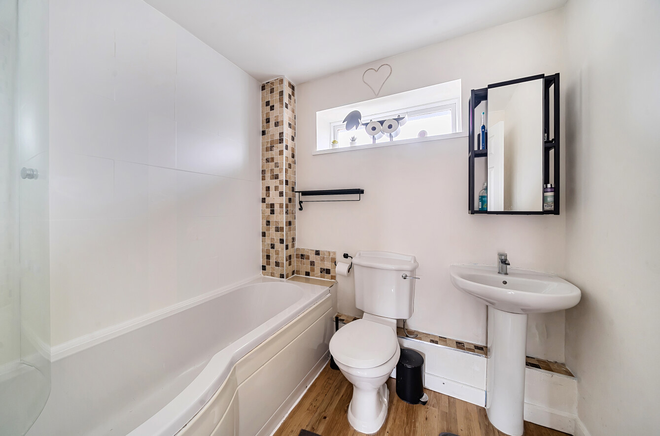 Upstairs, the accommodation comprises two generous double bedrooms, a well-proportioned third bedroom ideal as a home office or nursery, and a contemporary family bathroom. Further storage is available within the loft space.