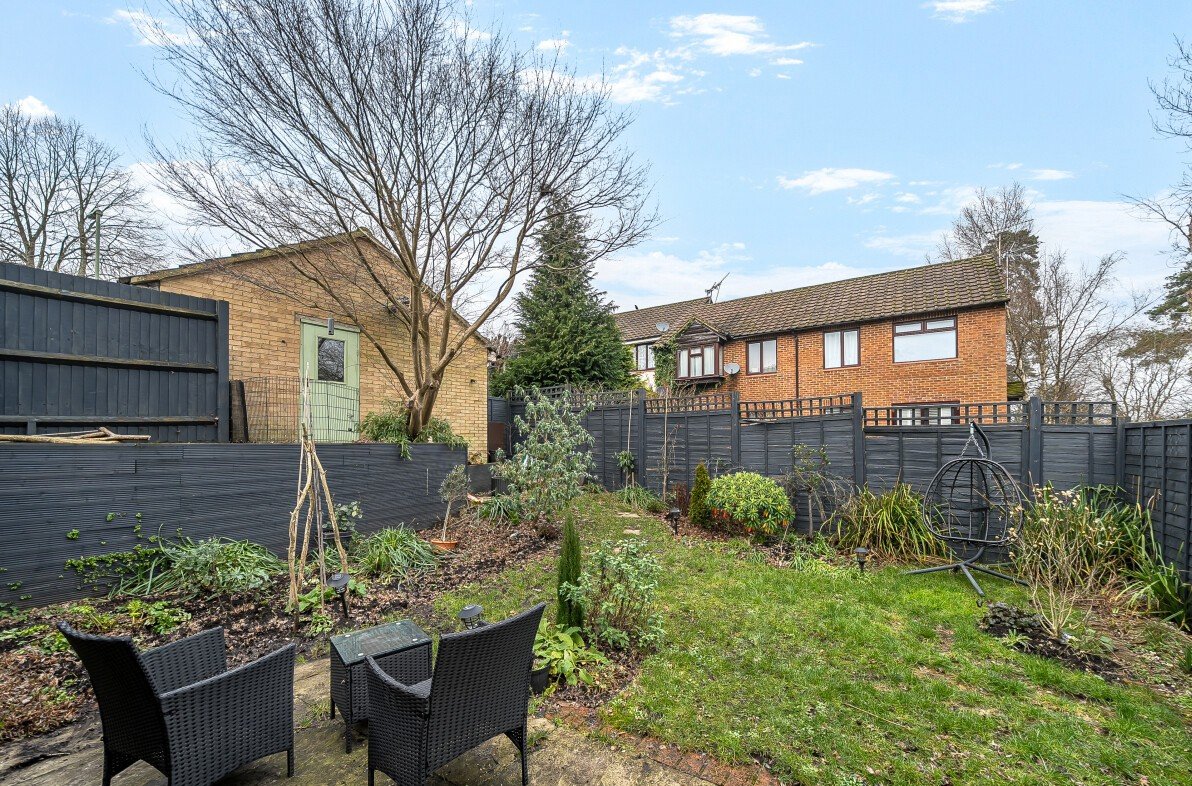 Externally, the property enjoys a private and well-maintained rear garden featuring a paved patio seating area, manicured lawn and attractive planted borders. A separate garage and allocated parking space are conveniently located to the rear, with direct gated access from the garden — ideal for secure storage of bicycles, outdoor equipment and general storage.