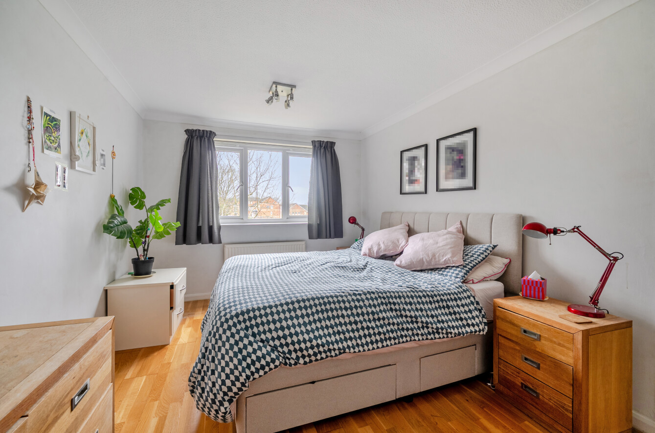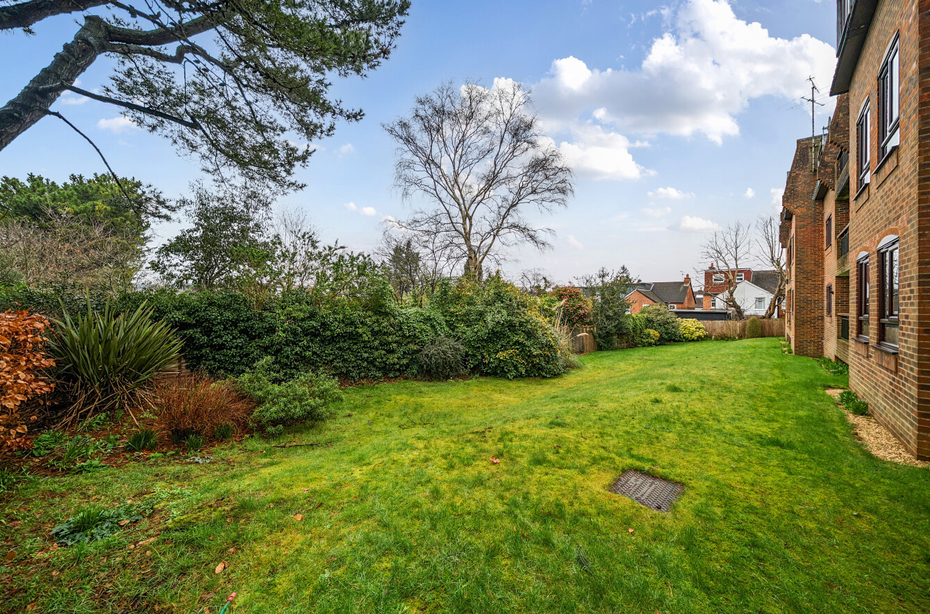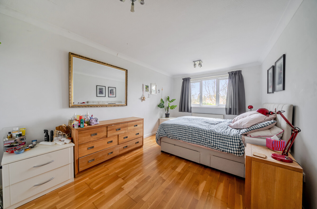 The main bedroom is an excellent size and benefits from built-in storage and a newly fitted modern ensuite. The second bedroom is also a generous double and includes built-in storage, while the apartment is completed by a good-sized family bathroom. To the front of the development, residents benefit from parking access, a single garage, and wrap-around, well-tended communal gardens.