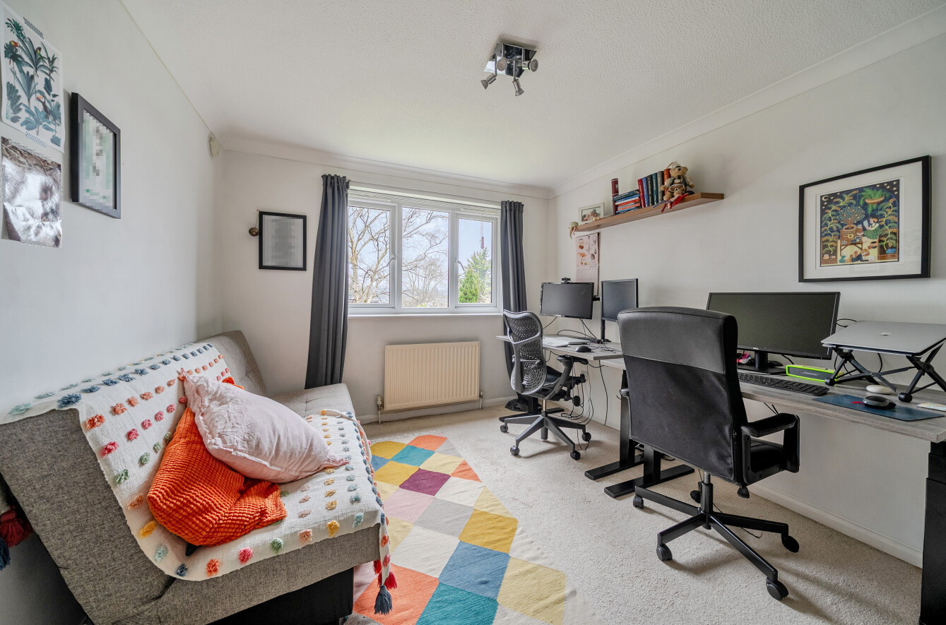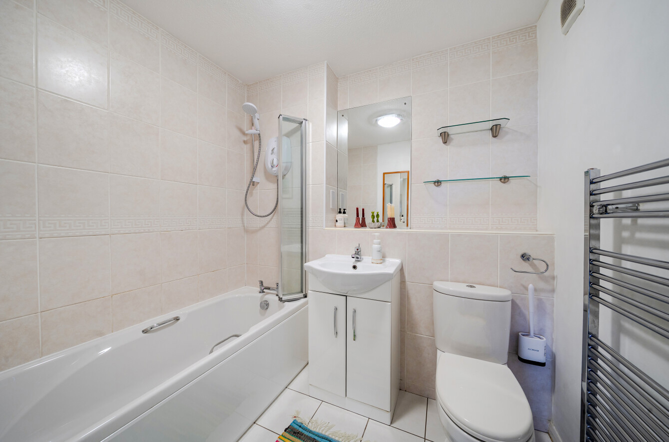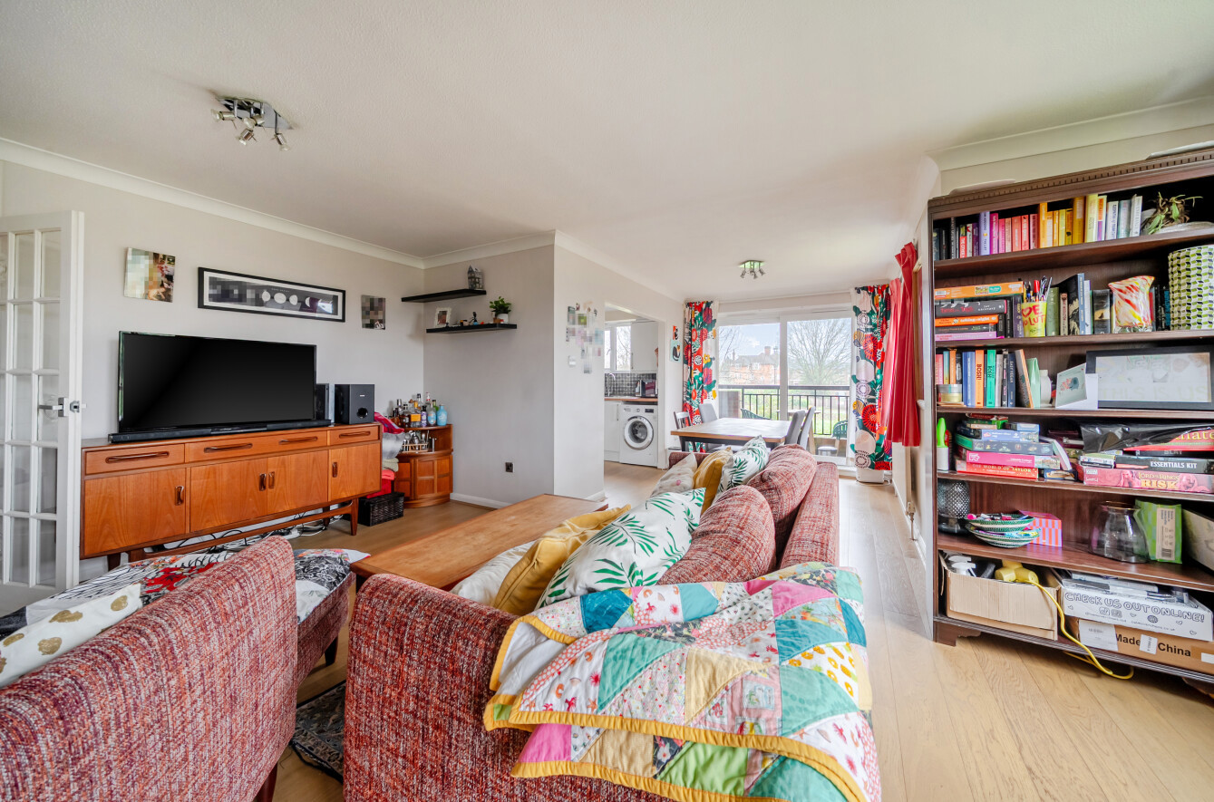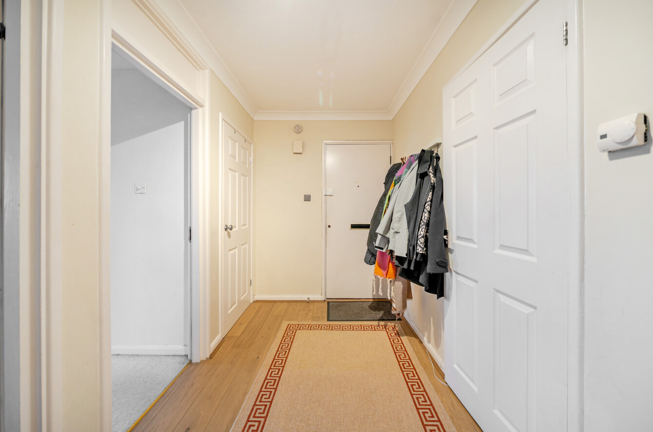 The main bedroom is an excellent size and benefits from built-in storage and a newly fitted modern ensuite. The second bedroom is also a generous double and includes built-in storage, while the apartment is completed by a good-sized family bathroom. To the front of the development, residents benefit from parking access, a single garage, and wrap-around, well-tended communal gardens.