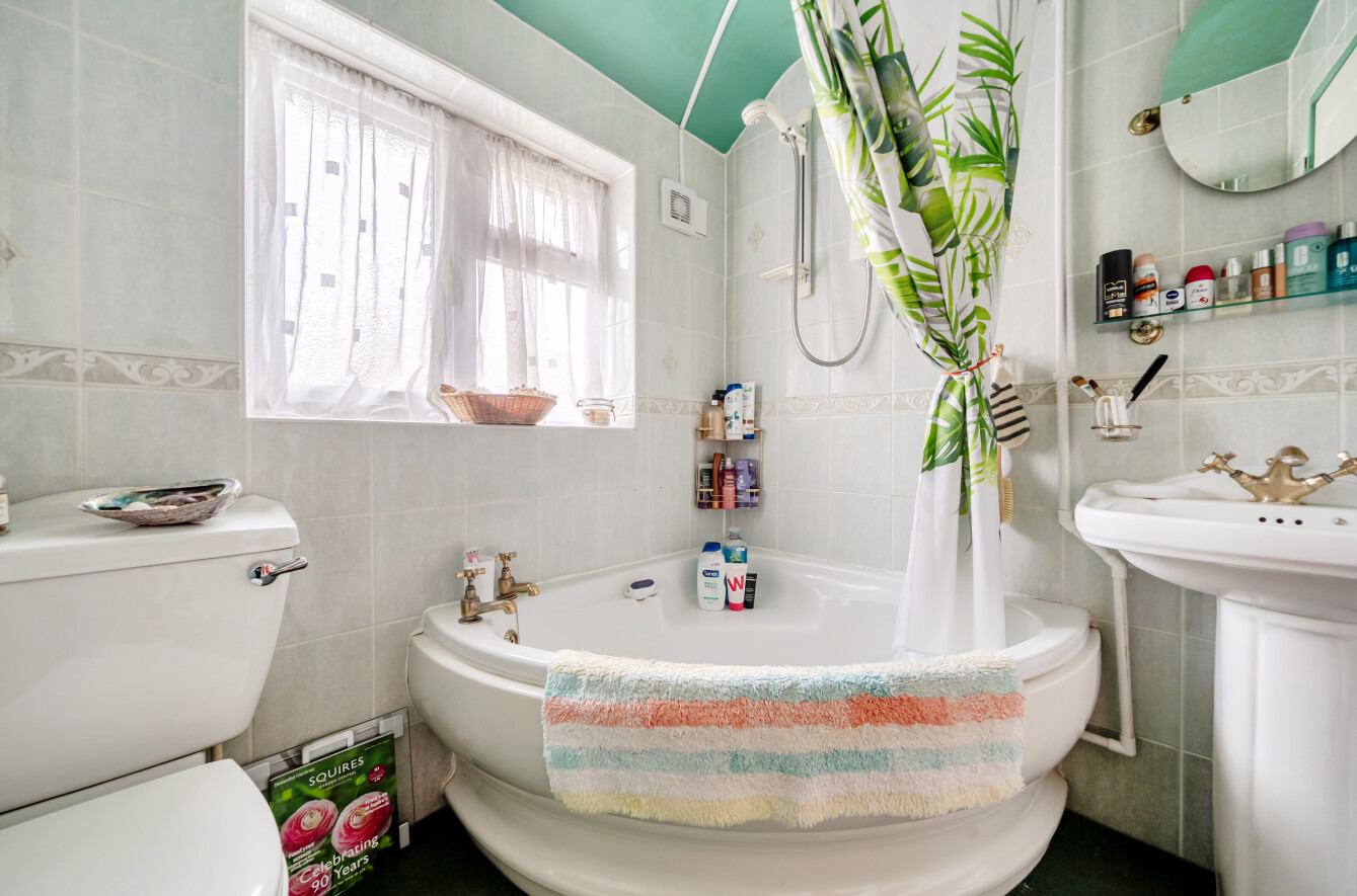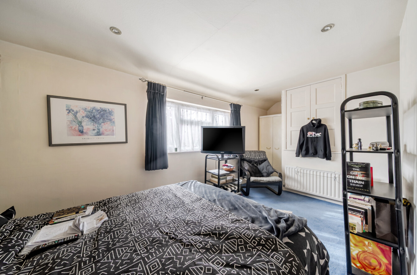 Outside, the property includes a front garden and a private driveway with off-road parking for two cars. The rear garden remains a pleasant feature of the home, combining lawn and patio areas that offer a great canvas for further landscaping.