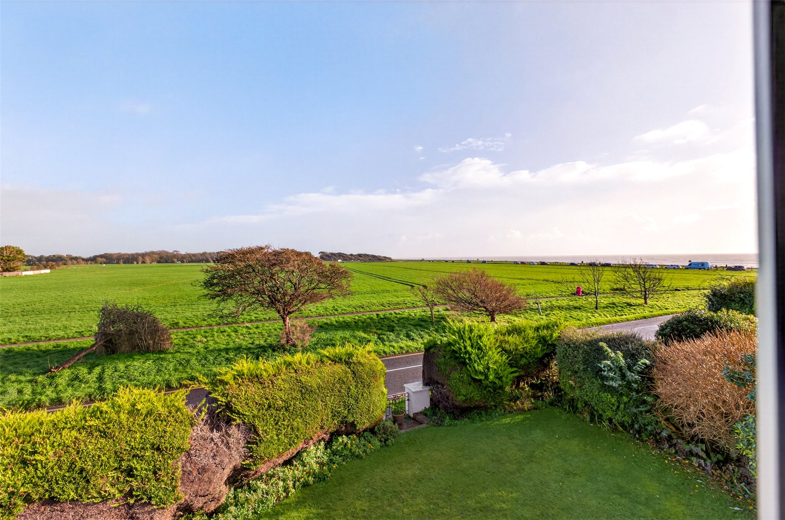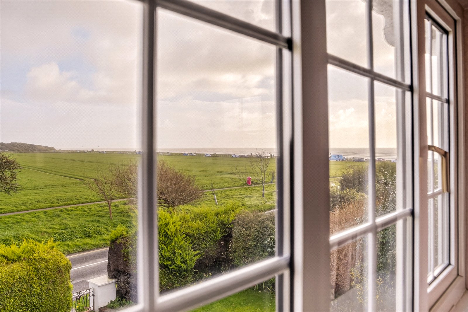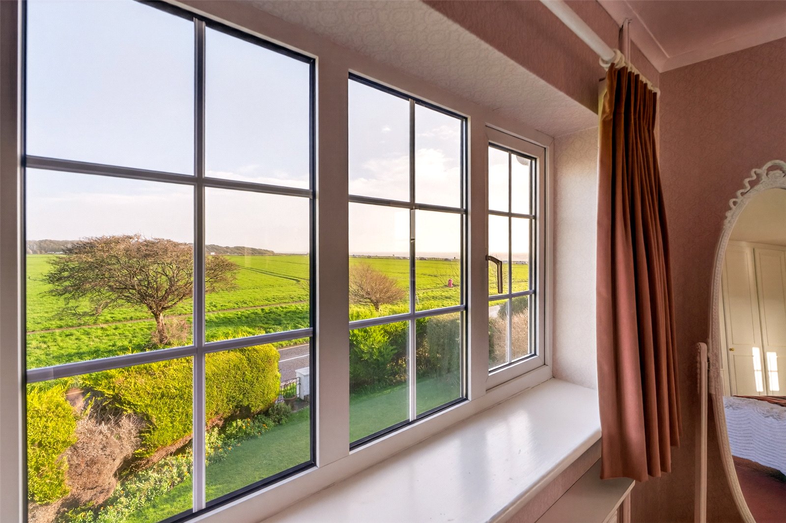 A wide staircase takes you up onto a large landing where there are three double bedrooms. All have plenty of fitted wardrobes and views over the rear garden. The main double aspect bedroom suite is particularly spacious. With wonderful views to the sea and open countryside, this wonderful area has an ensuite bathroom and a dressing room. The ensuite has a second door out to the landing allowing handy access for the other bedrooms.