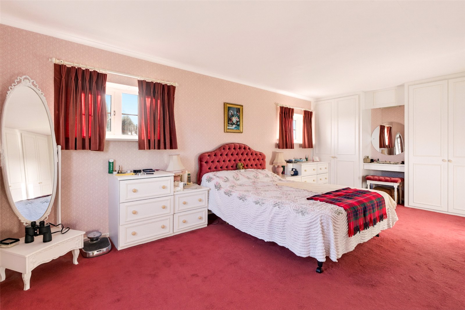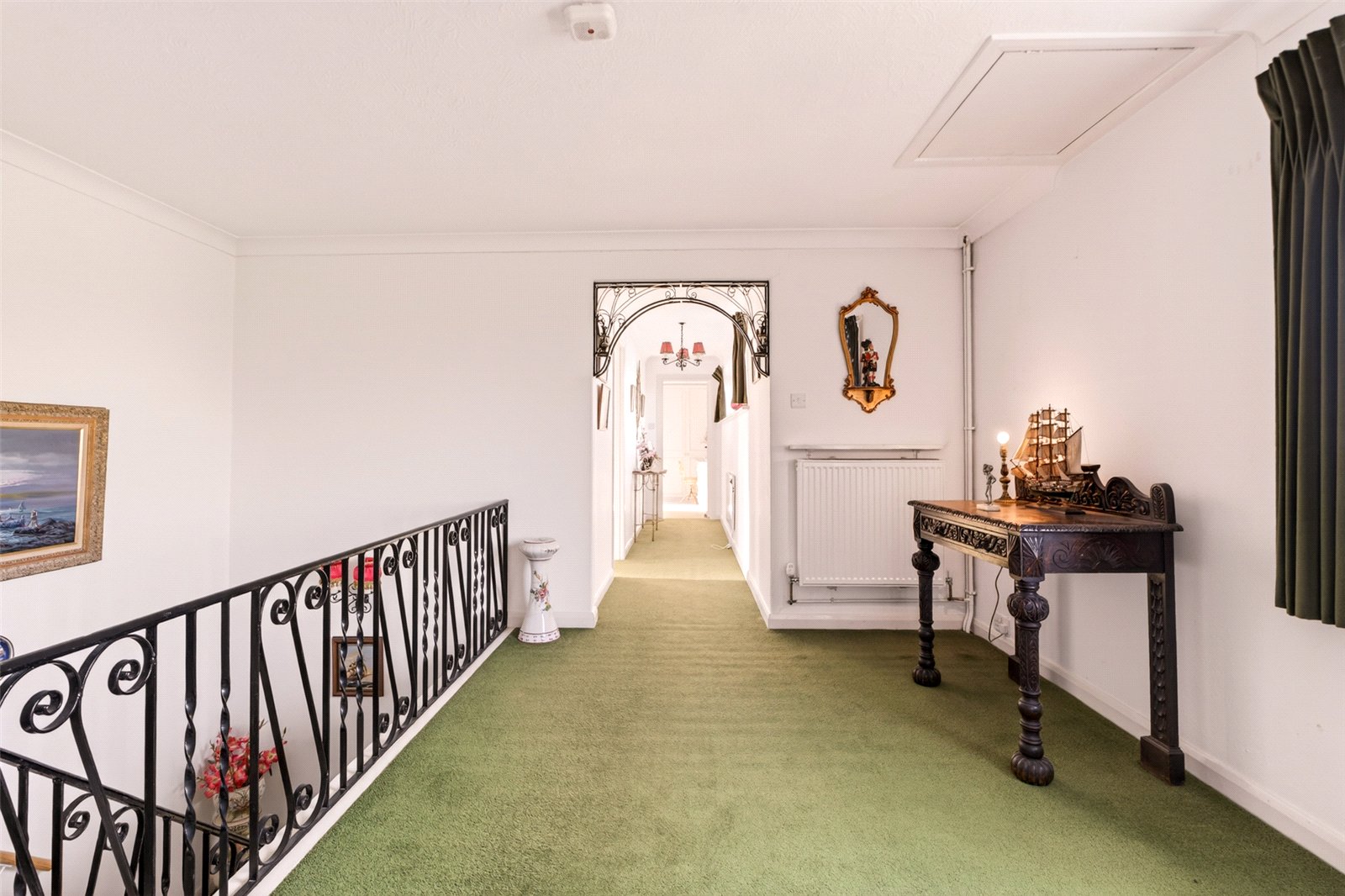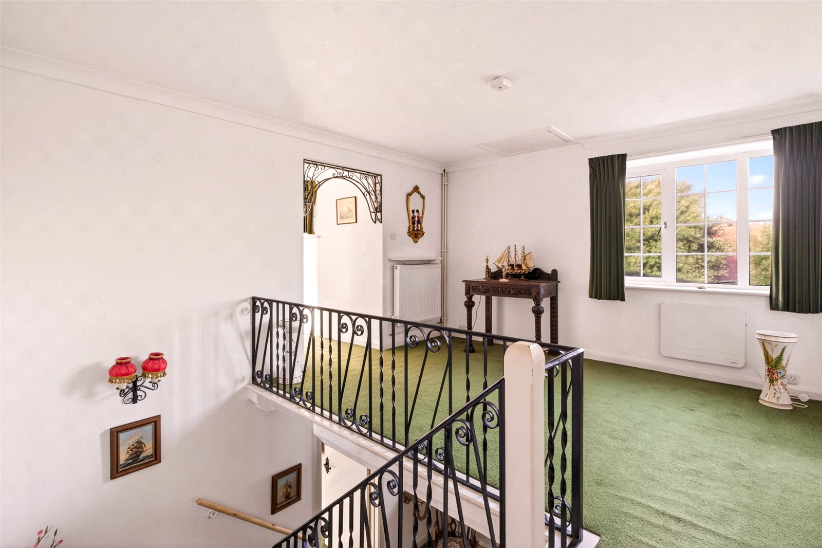 A wide staircase takes you up onto a large landing where there are three double bedrooms. All have plenty of fitted wardrobes and views over the rear garden. The main double aspect bedroom suite is particularly spacious. With wonderful views to the sea and open countryside, this wonderful area has an ensuite bathroom and a dressing room. The ensuite has a second door out to the landing allowing handy access for the other bedrooms.
