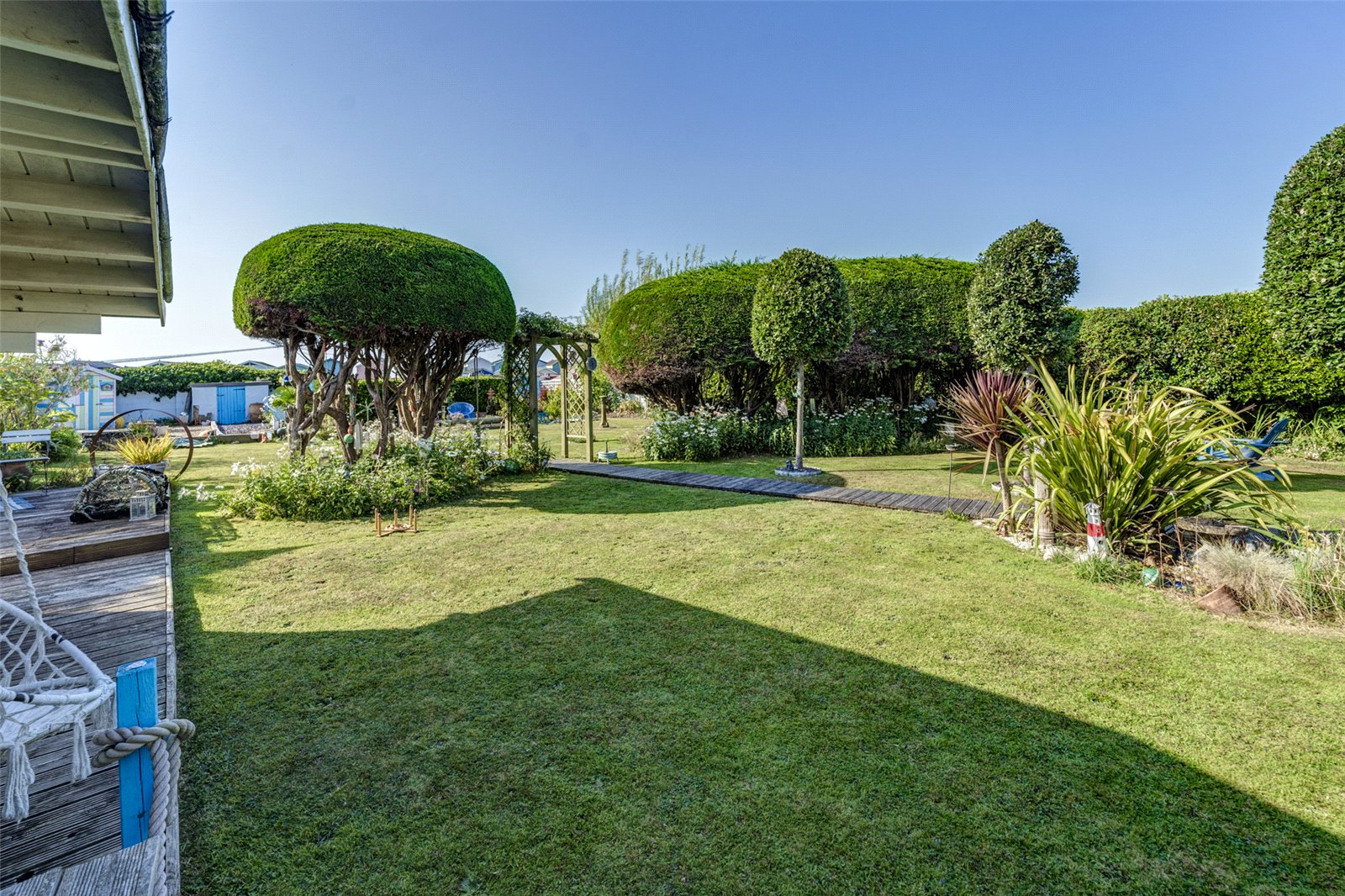 A particular feature of this home is the tranquil walled garden, offering a variety of pretty seating areas. Backing on to yet sheltered from the beach, the garden is skilfully designed and lovingly maintained, offering a perfect spot for entertaining or relaxing. Laid to a harmonious mixture of lawn, mature trees and shrubbery, the garden includes a summer house, hot tub and a very adaptable detached studio. The property benefits from good all round access with additional parking at the rear, which has proved invaluable for residents. A large forecourt and double garage with work bench take up the front of the property.