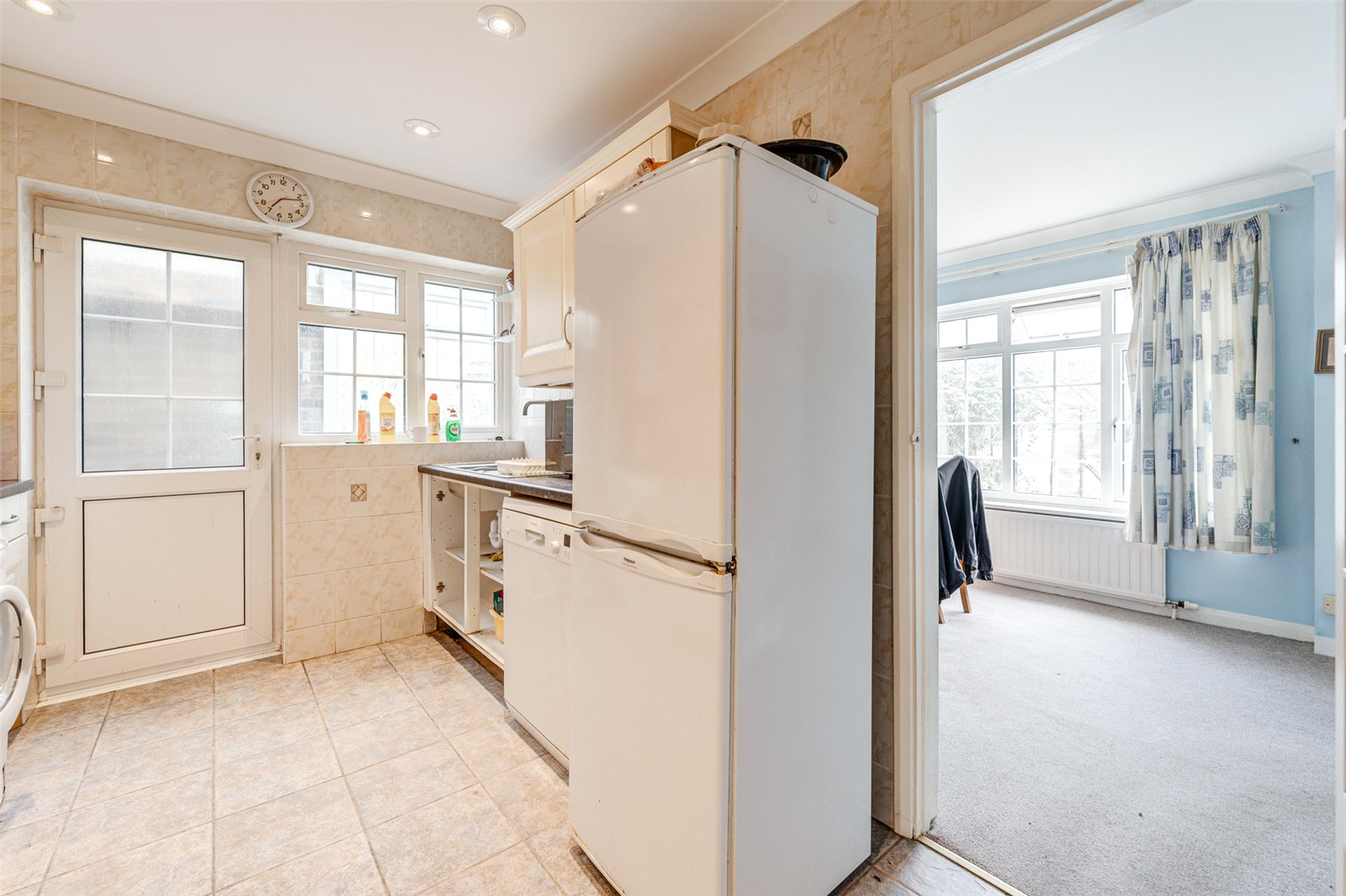Approached down a central path the front door opens into a reception hall which has a cloakroom, and off which all of the accommodation is accessed. There are three good sized double bedrooms. Two are on the first floor and have plenty of eaves storage. The third double bedroom is on the ground floor. It too has fitted storage and looks out over an appealing front garden. At the rear of the property, and running its entire width, is a spacious lounge/diner. This expansive area has a set of French doors leading into a sunroom and is filled with natural light coming in though a large glazed window as well from the sunroom. This sunny room offers a lovely space to relax. There is a good sized kitchen adjacent which has ample worksurfaces, cupboards and drawers; a door with access to a lean providing access to the front and rear of the property; an integrated gas hob and wall oven, and plenty of room for further appliances as required. A shower room on the first floor and a modern three piece bathroom suite on the ground floor make up the rest of the accommodation.