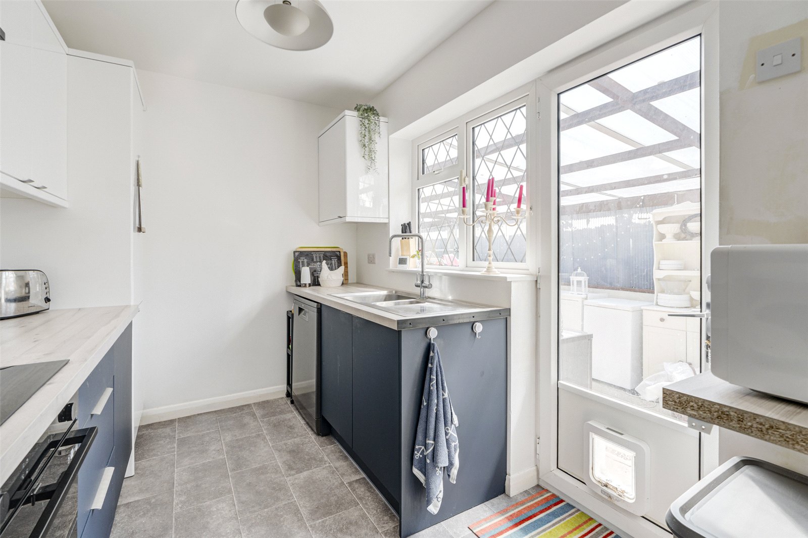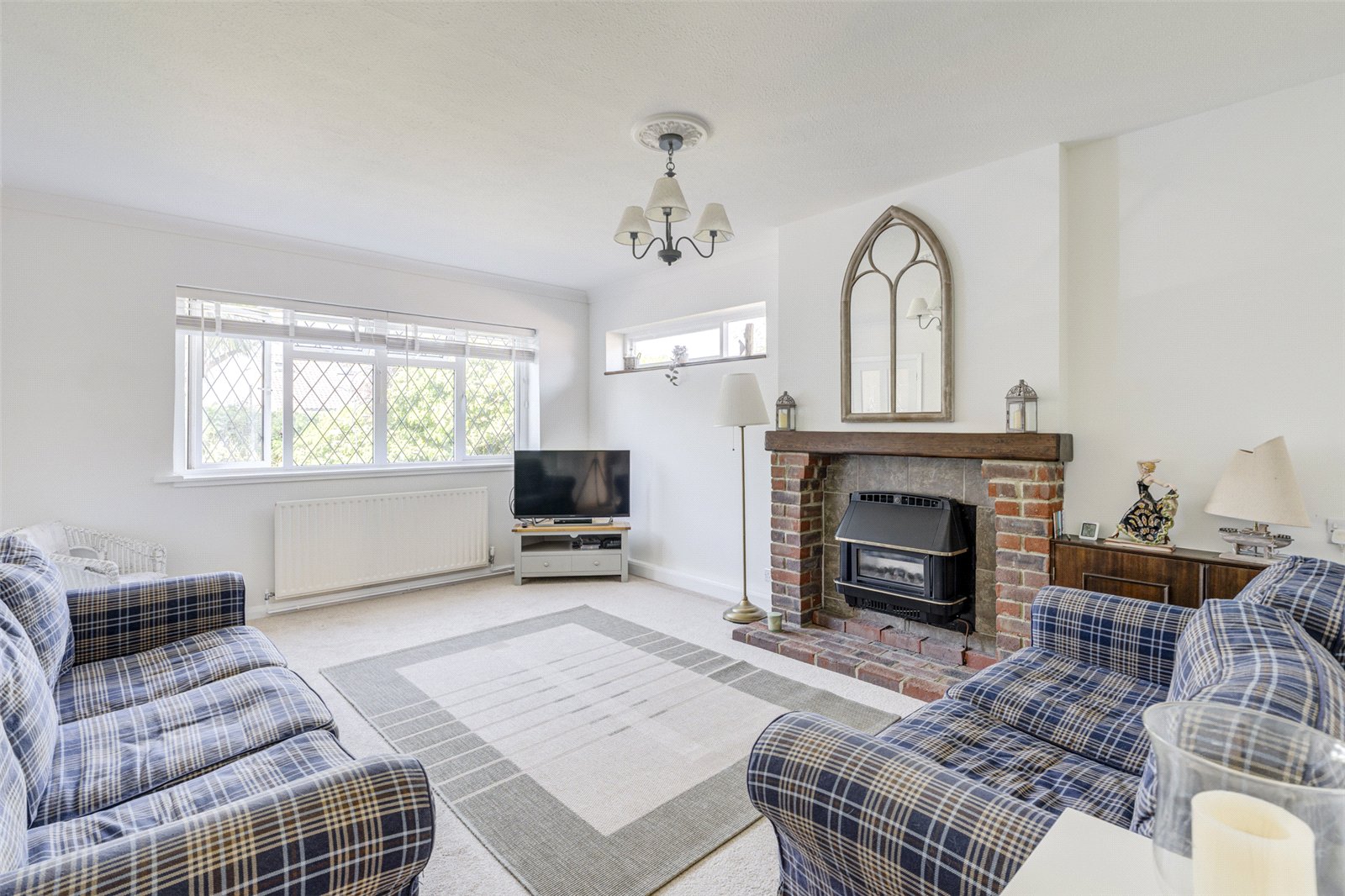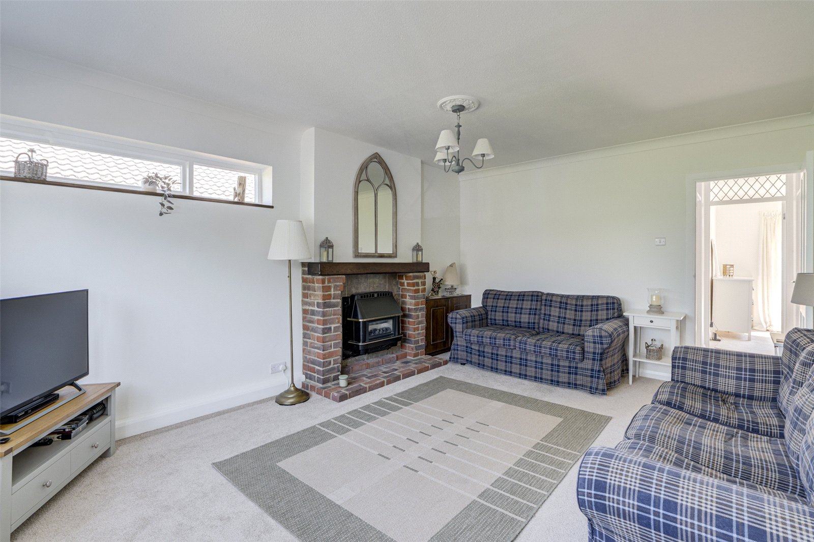 Located at the end of a very peaceful cul de sac and accessed from the front the main door leads into an entrance porch which has separate doors to the lounge and kitchen. The spacious double aspect lounge has a feature gas fireplace and views over the front. Adjacent is a modern kitchen with an integrated induction counter hob and electric oven beneath: fridge/freezer: dishwasher and room for further appliances as required. In addition are plenty of cupboards, drawers and worksurfaces and a door leading out to the very spacious tandem carport, currently utilised for storage. The rear of the property is taken up with two double bedrooms which look out over an attractive garden. The larger double has ample fitted wardrobes running across the width of the bedroom. Whilst the second has glazed French doors to the rear patio and garden. A contemporary bathroom makes up the rest of the accommodation.