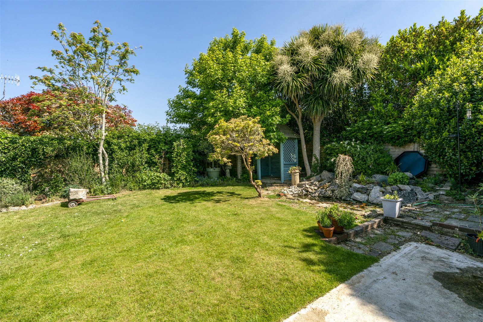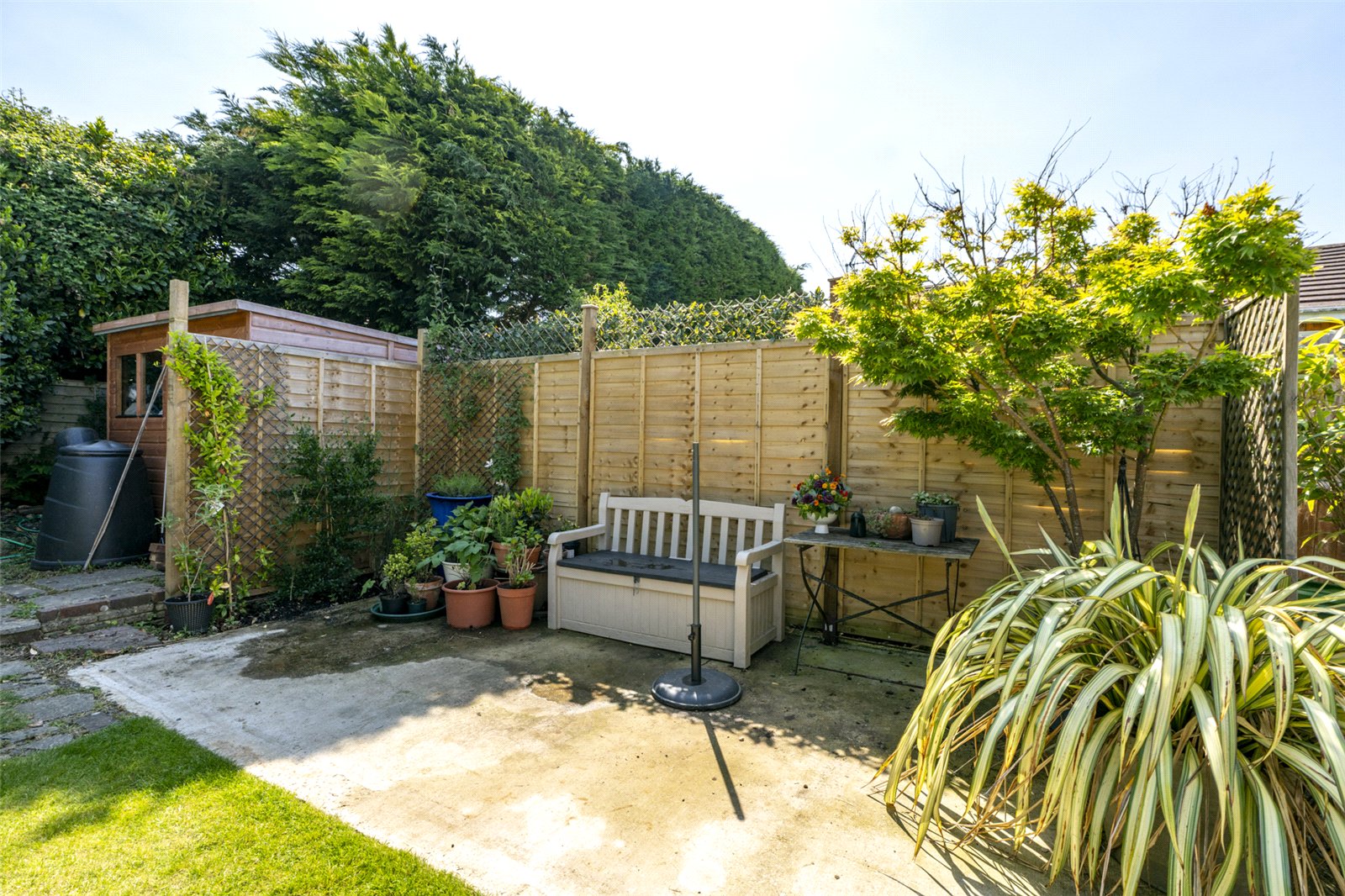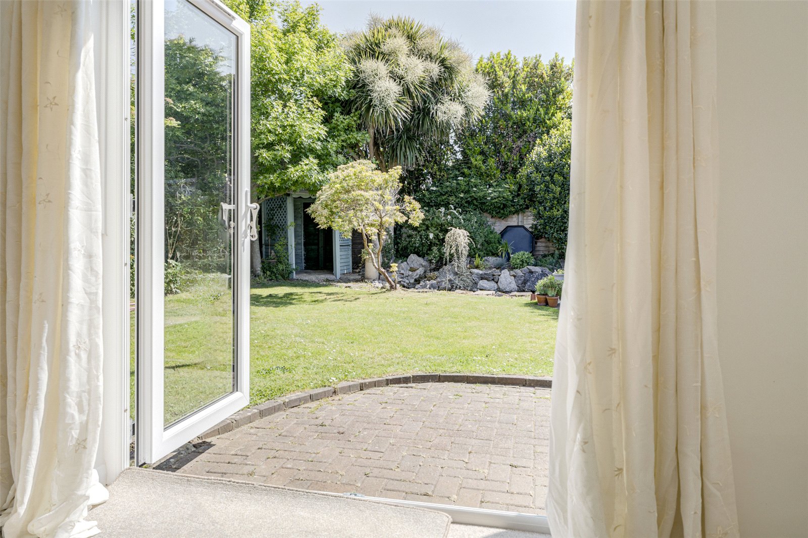 Outside the front west facing garden is laid to lawn, has mature border hedges and a wide drive which takes you up to double gates allowing access to the carport which runs the depth of the bungalow. A side path also leads to the rear. To the back is a fully enclosed garden again laid to lawn with attractive borders planted with an array of shrubs and mature trees. This secluded area has a garden shed, a variety of seating areas and a paved patio offering a wonderfully private space in which to relax or entertain.